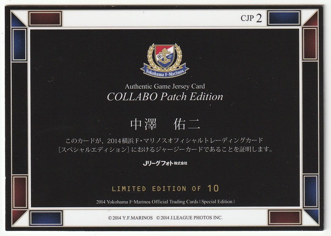 【中澤佑二】2014 横浜F・マリノス オフィシャルカード ホーム&アウェイコラボジャージ・パッチカード [LIMITED EDITION OF 10]