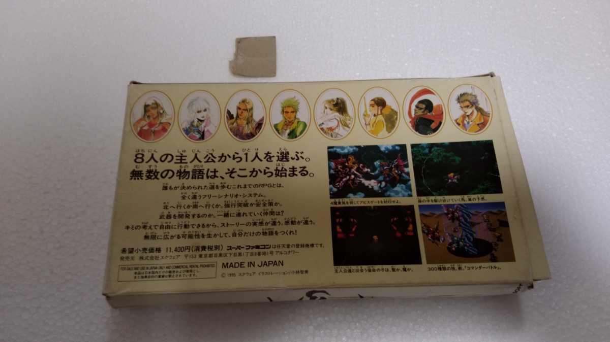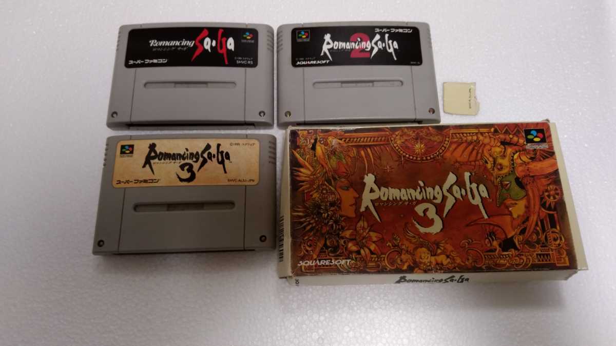 | 商品説明 | SFCのロマンシングサガ1、2、3のソフト。 カセットのみ3本セットです。ロマサガ3の箱はおまけです。 3の箱は耳が取れています。内箱、説明書はありません。 またソフト本体全体的にキズ、汚れ、黄ばみ等があります。 箱はおまけなので、折りたたんでお送りします。 初期動作確認済みですが、カセット系商品の性質上稀に接触が悪い場合があります。 セーブを確認しておりますが、バックアップ電池の補償はありません。 (商品の状態は写真をご参考ください。) あくまでも中古品ですので、落札後はノークレーム・ノーリターンでお願いいたします。 |