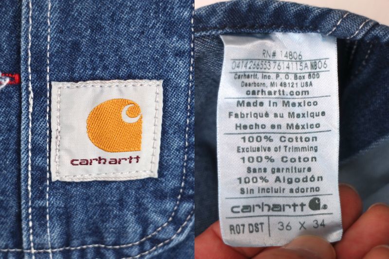 Carhartt■ウォッシュドデニムビブオーバーオール インディゴ/36×34 R07 DST カーハート