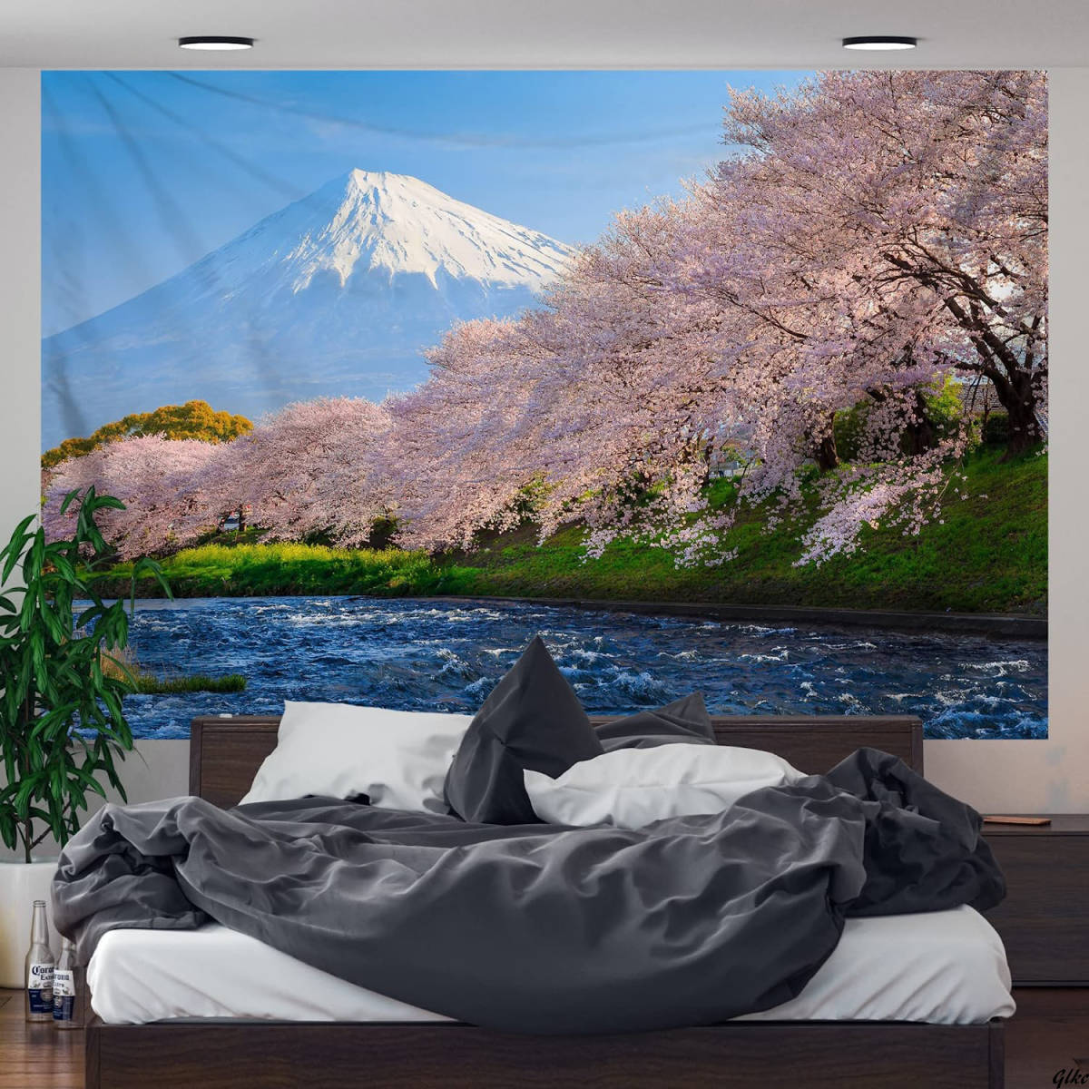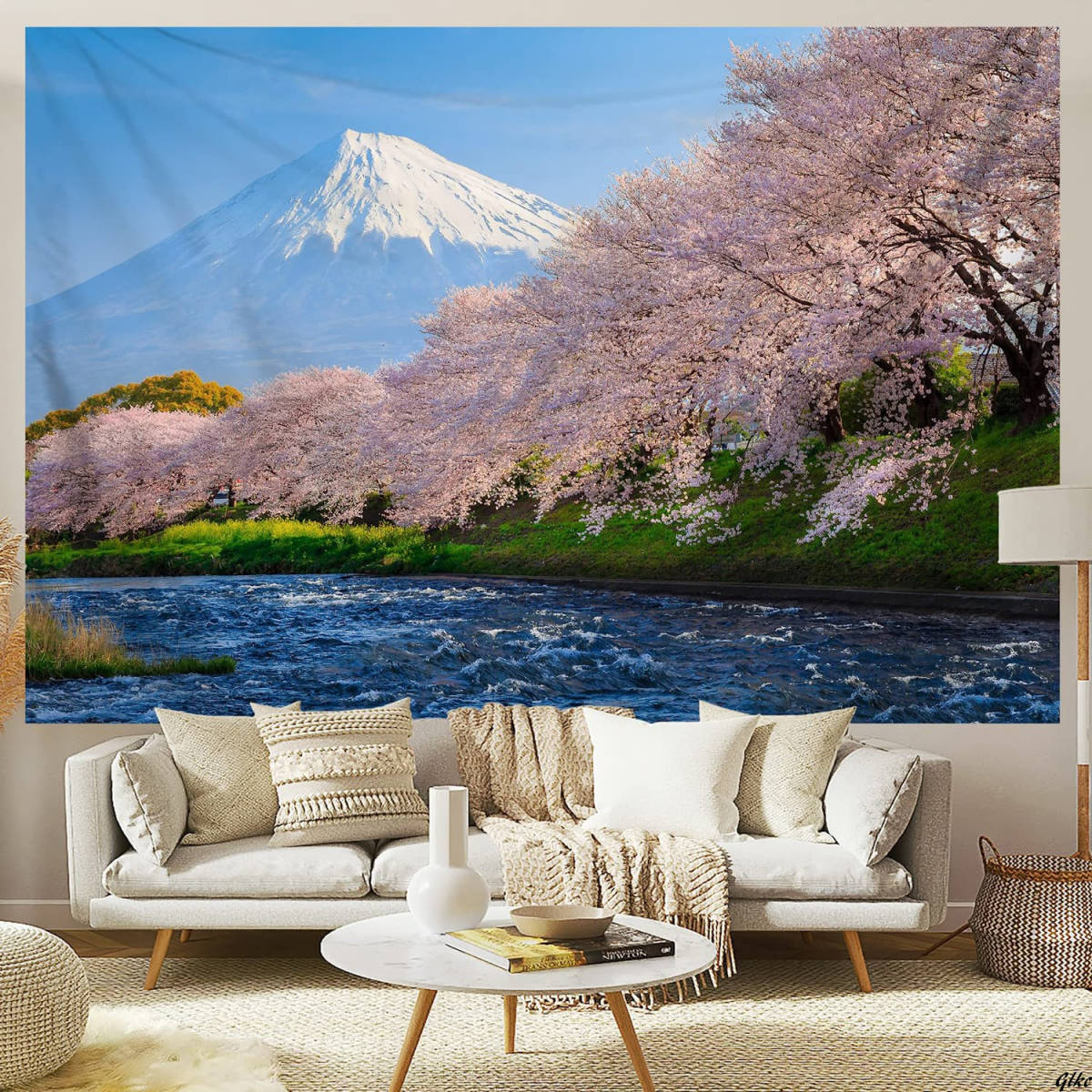 タペストリー 富士山 河津桜 川 おしゃれ 布ポスター プレゼント クラシック 気分 インテリア 壁掛け 壁飾り 暖簾 雰囲気