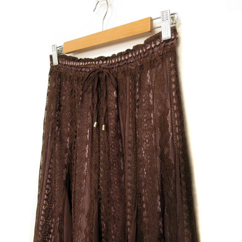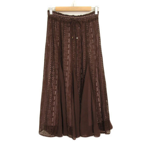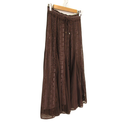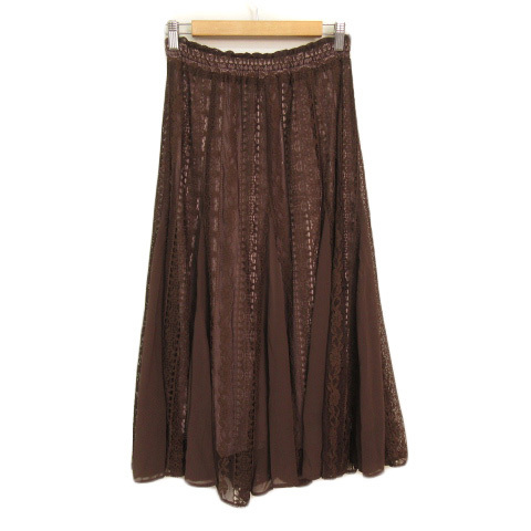 フェルゥ Feroux Swingleミモレレース スカート 2 茶 ブラウン レディース