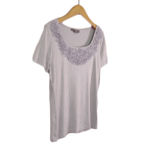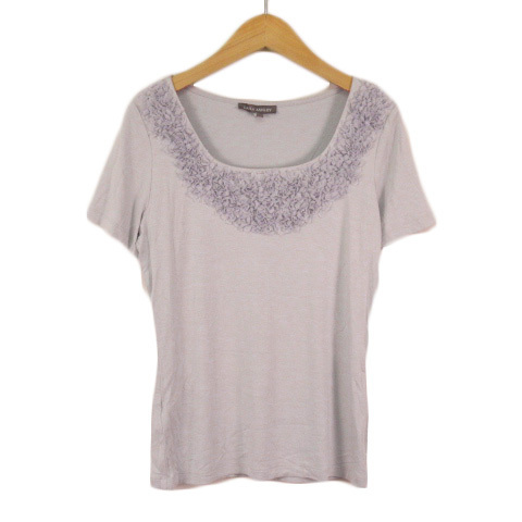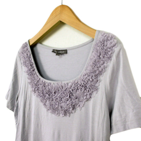 ローラアシュレイ LAURA ASHLEY カットソー フラワーモチーフ 半袖 レーヨン XS 紫 パープル レディース
