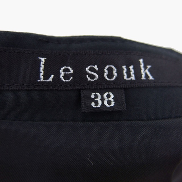 ルスーク Le souk タイト スカート 膝丈 コットン 綿 無地 シンプル タック スリット 38 ブラック 黒 /HT14 レディース