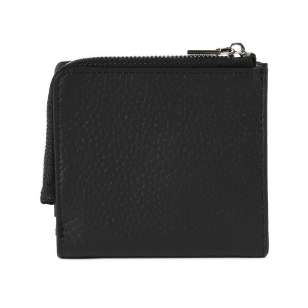 s1 即決◆二つ折り薄財布 【ブラック】 レディース 本革 シボ牛革 薄型 L字ファスナー 小銭入れ付