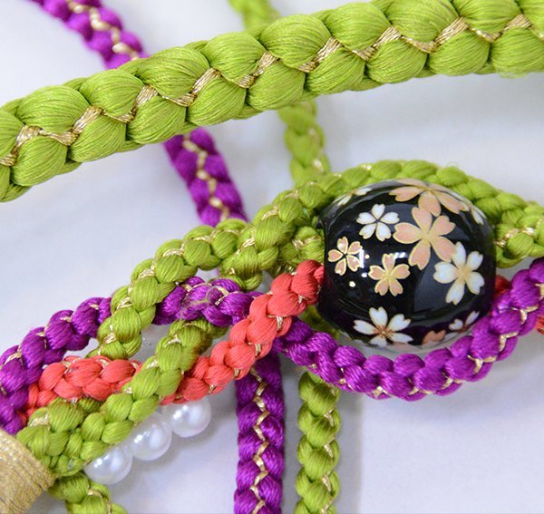 | 品質 | 新品・正絹 ★組紐に飾り玉とパールビーズが付いた華やかな正絹帯締め ★正絹とは? 本絹ともいう、まじりけのない絹糸、またはその絹糸で織った織物。 ・本体:絹100% ※当店では、現物と写真画像の色、イメージに相違がないよう、撮影に工夫を凝らしておりますが、より詳しいお色説明をご希望のお客様は「サイト設置の質問」「メール(aji_net@khaki.plala.or.jp)」「お電話」「FAX」にて、御質問ください。 |
