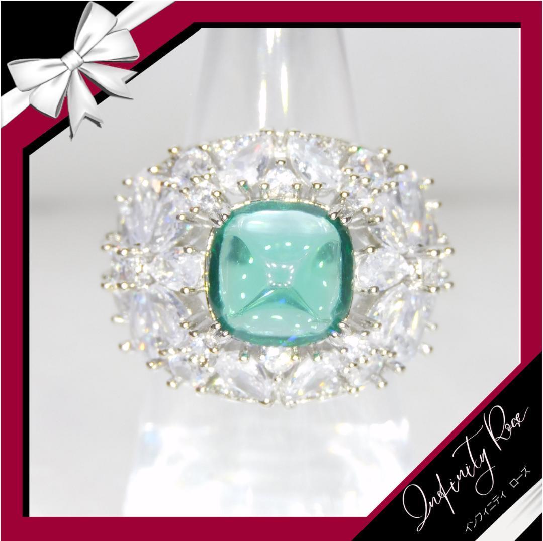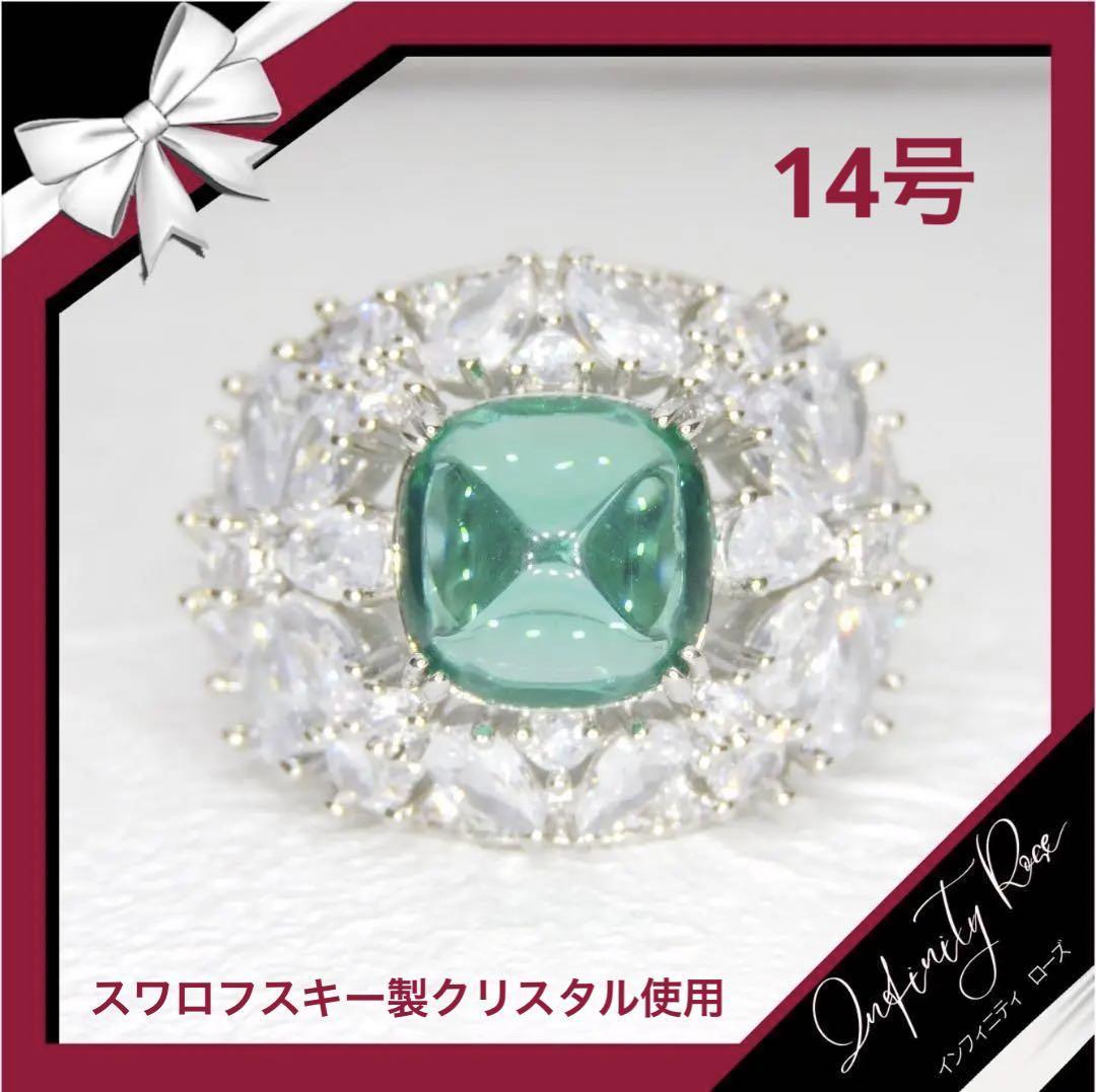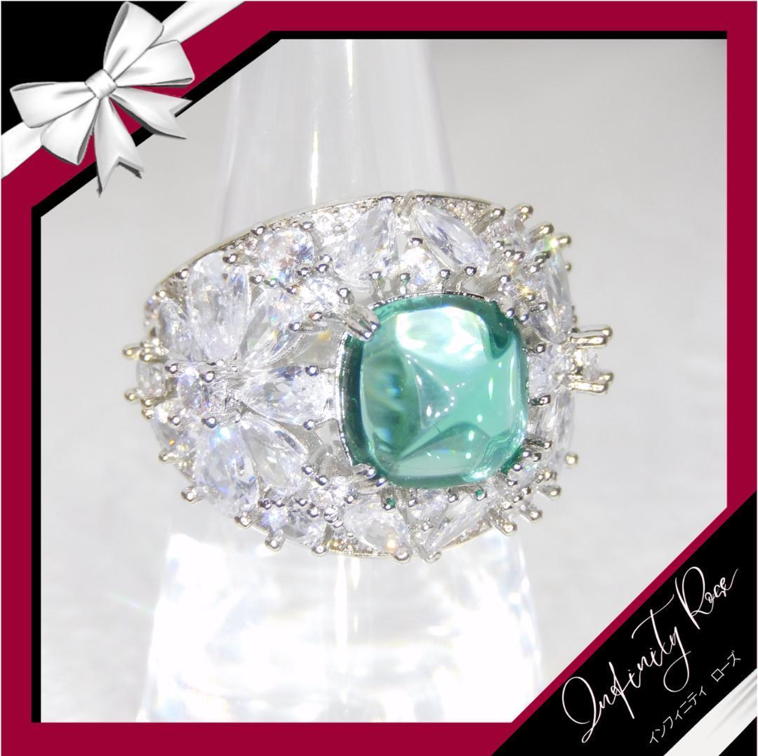 (R044S)14号 ビジューとフラワーの豪華煌めくワイドリング 爪留指輪 スワロフスキー製クリスタル使用