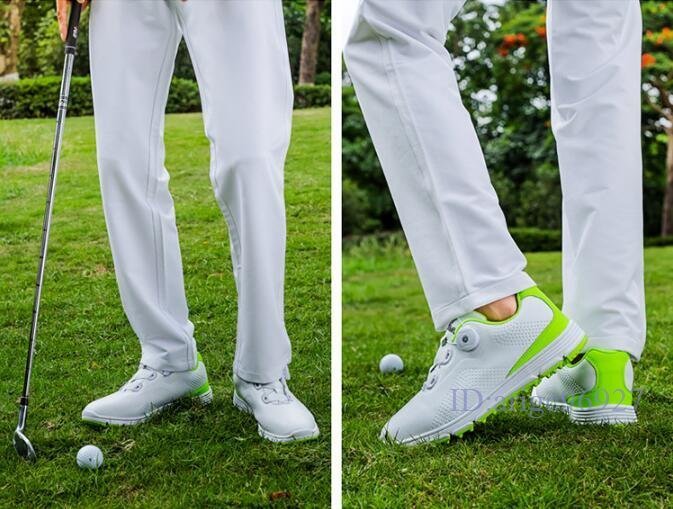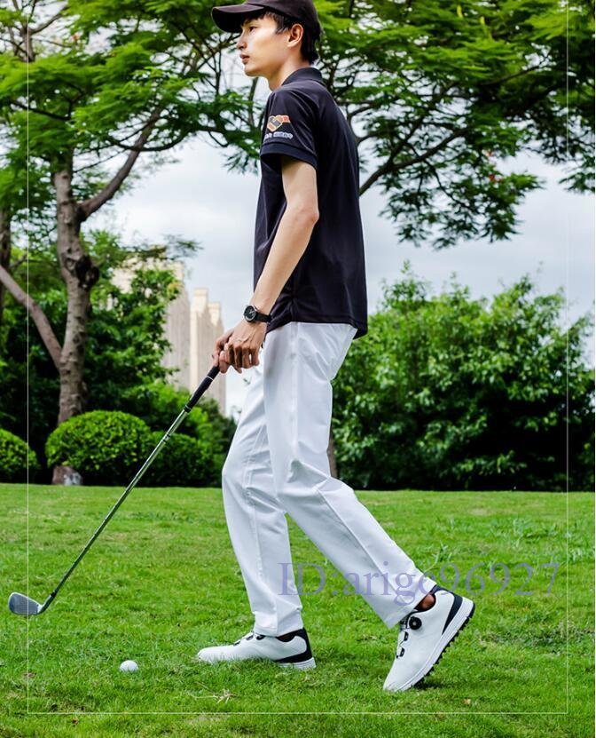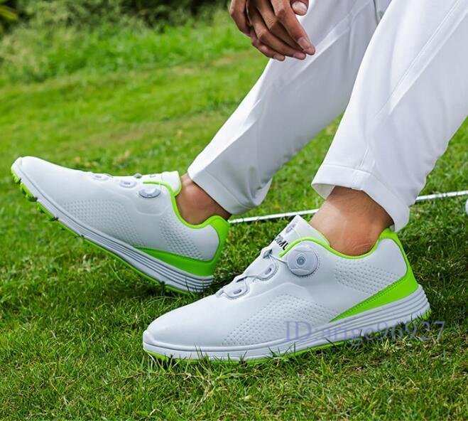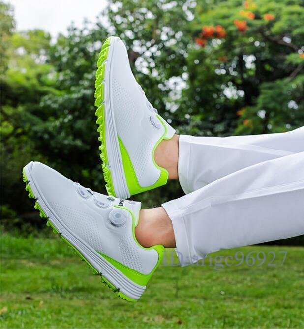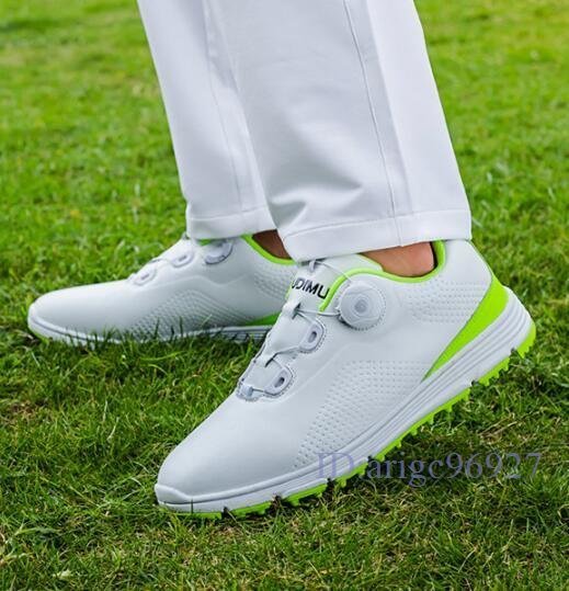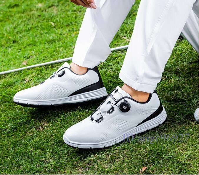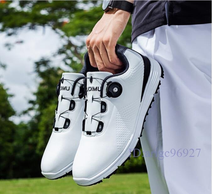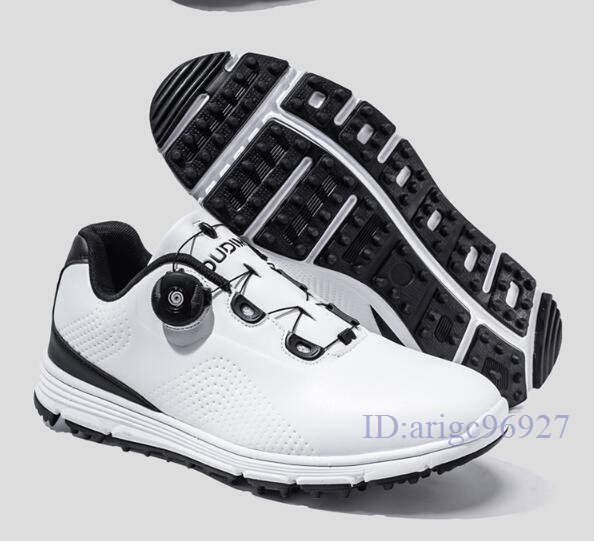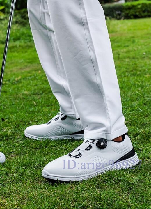 Q825☆新品ゴルフシューズスニーカー強いグリップスパイク靴ワイドソフトスパイクポーツシューズ防水防滑耐磨24.5~27.5cm白黑選択/24.5cm