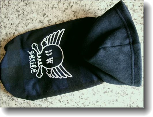 犬服V72-MS■MSサイズ■トイプードルS等小型犬用紺系ブロックチェック柄裏毛パーカー*ドクロハンドメイド