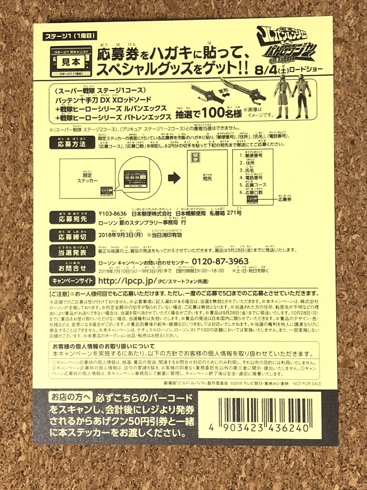 LAWSON x 快盗戦隊ルパンレンジャー VS 警察戦隊パトレンジャー の キャンペーンで配布されていた 「シール」 をコレクション整理の為出品します。 2018年頃配布されていたものだったと思います。 ※入手から長期経過した商品は、私の記憶違いや勘違いで入手時期や入手経路(フェア名・配布店舗等)に誤表記があるかもしれませんので、絵柄(デザイン)・キャラクター 等 重要な部分は必ず写真をご確認ください。(特に記載のない場合は入手時期や入手経路等は覚えていません。)  ※検索用※ 戦隊 日朝 ニチアサ ルパパト 夜野魁利 ルパンレッド 宵町透真 ルパンブルー 早見初美花 ルパンイエロー 朝加圭一郎 パトレン1号 陽川咲也 パトレン2号 明神つかさ パトレン3号