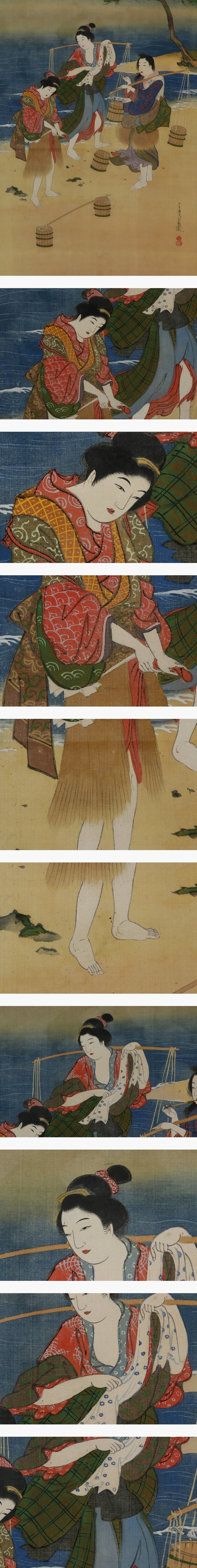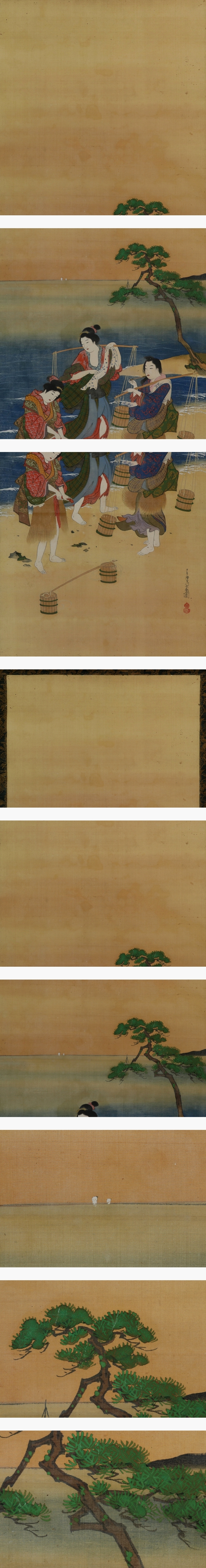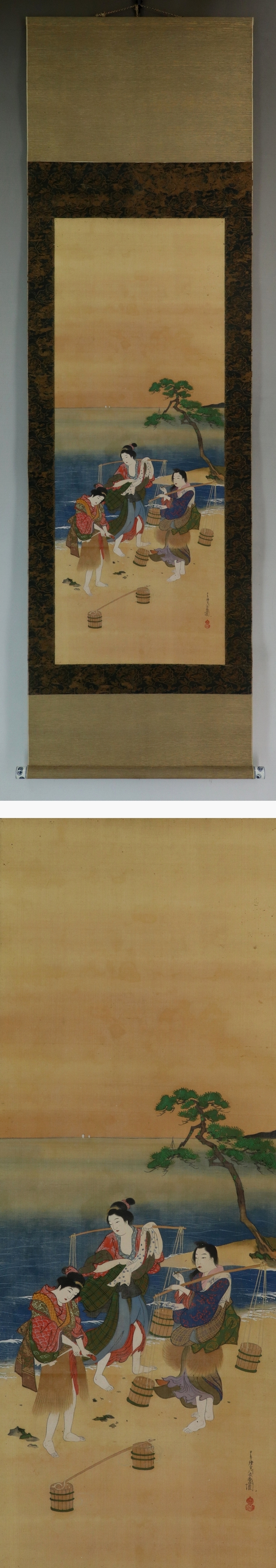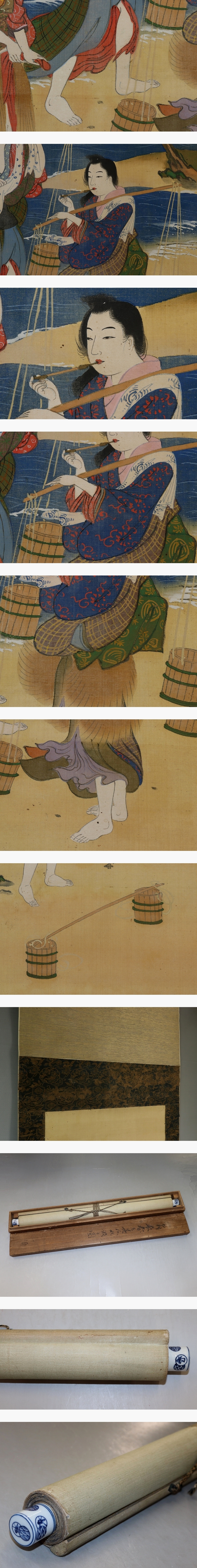 | №2204014【真作】宮川長春【汐汲み図】◆絹本◆合箱◆掛軸 | |