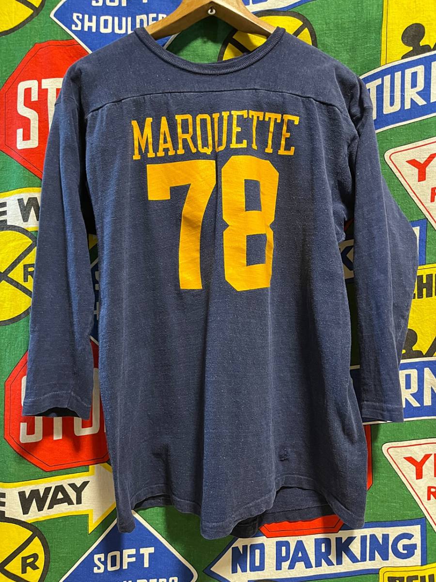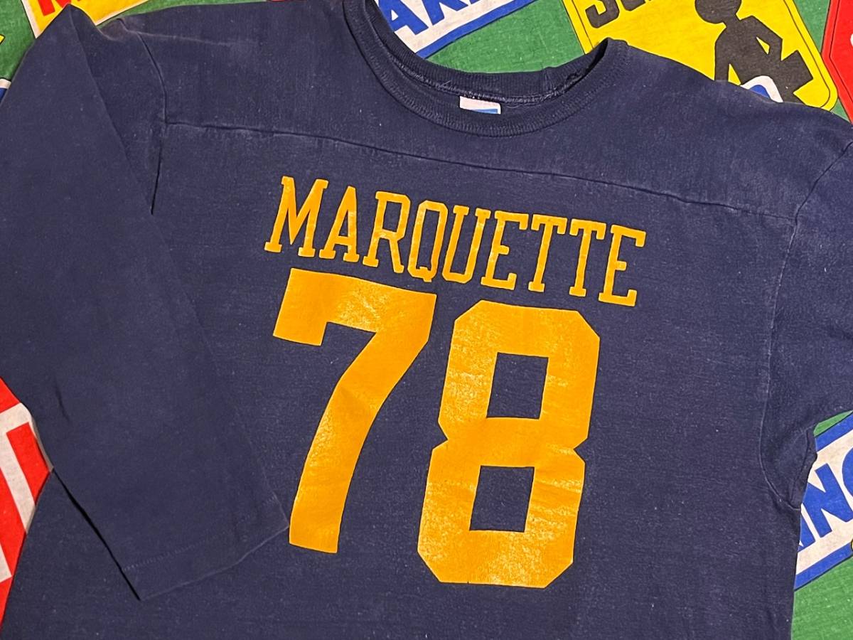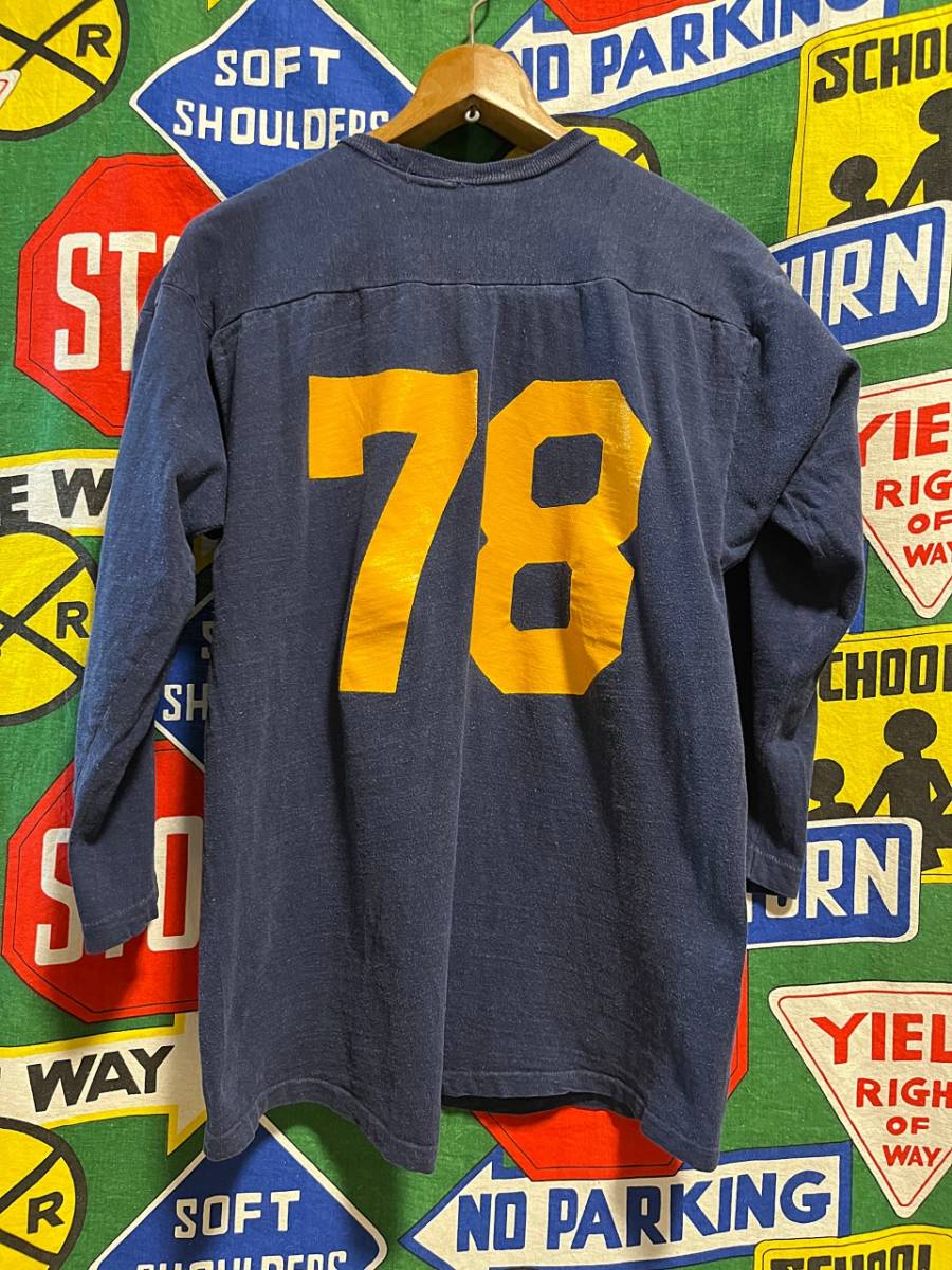 ☆好配色のカラーが◎な1枚☆Made in USA製アメリカ製ChampionチャンピオンビンテージナンバリングフットボールTシャツ70s70年代バータグ紺