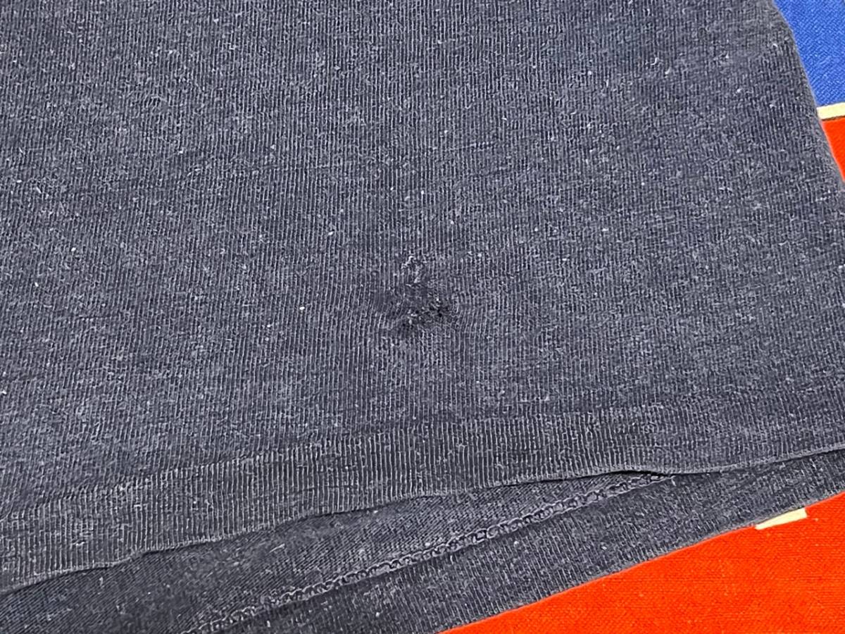 裾付近に補修、後ろ襟に小さなダメージ、袖先に僅かなスレ、柔軟剤の様な匂いがついています。その他、USED相応の着用感がありますが、目立ったダメージは見られません。