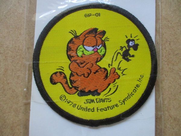 70s ガーフィールド Garfield ワッペン/小レトロ昭和コミックJim Davis猫ネコねこCATアニメ漫画ジム・デイビスpatches刺繍ビンテージ S81