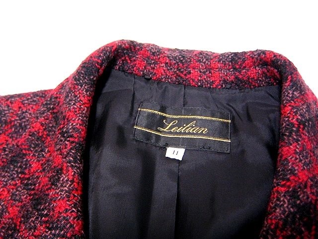Leilianのフランス製生地 Tissage des Chaumesを使用したチェック柄の高級ジャケットです。 袖やフロントボタンも凝っています。 レリアンらしい高級感のある仕上がりです!! (サイズ)11・肩幅38㎝ 脇下身幅52㎝ 最小身幅47㎝ 着丈67㎝ 袖丈53㎝ (素材)表・ウール70% シルク23% ナイロン7% 裏・キュプラ (カラー)レッド系 (商品状態)使用感があり、多少のスレやホツレがあります。 |