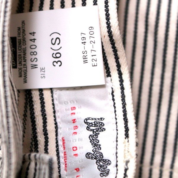 美品 Wrangler SENSE OF PLACE センスオブプレイス アーバンリサーチ ■ ストライプ柄 ロゴ ヒッコリー デニムスカート S 白 ネイビー 紺