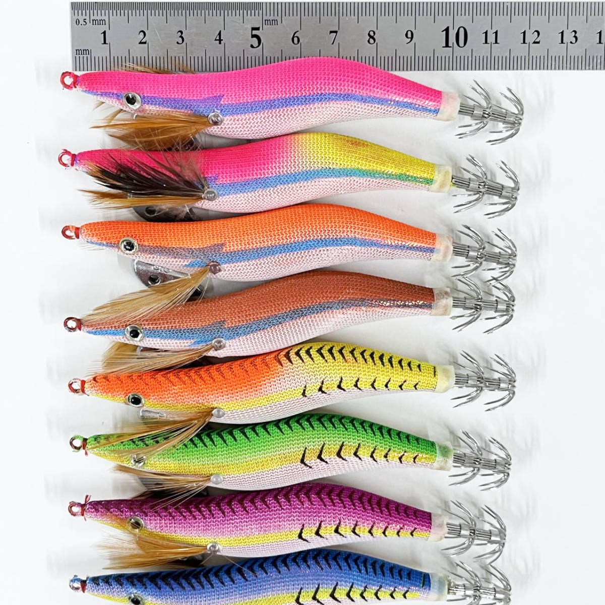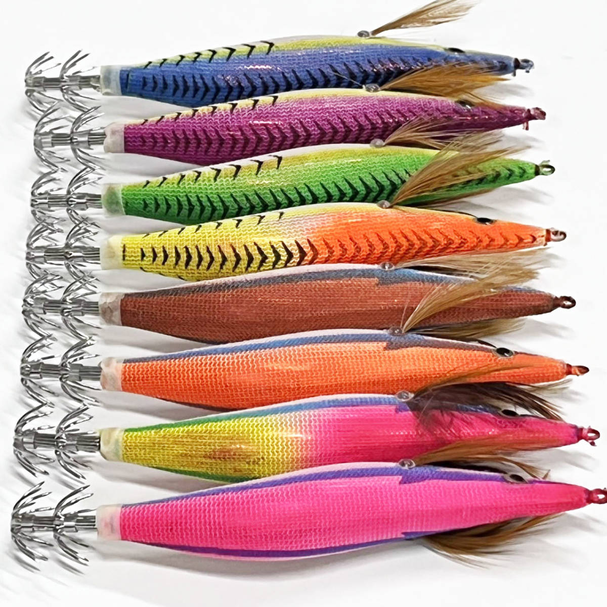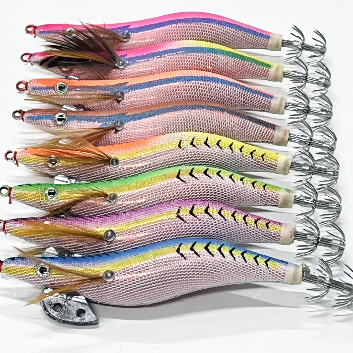 このセットのボディカラーは釣果良いピンク、オレンジ、ピンク黄色、茶色、薄オレンジ、紫、黄緑、青色の8色になります。