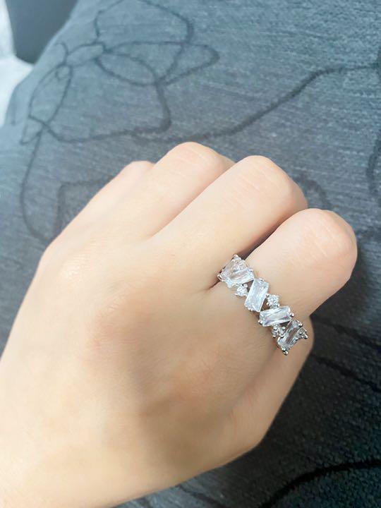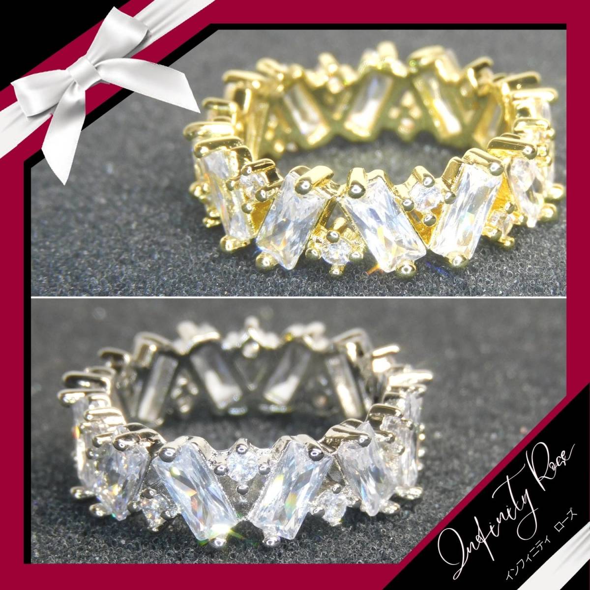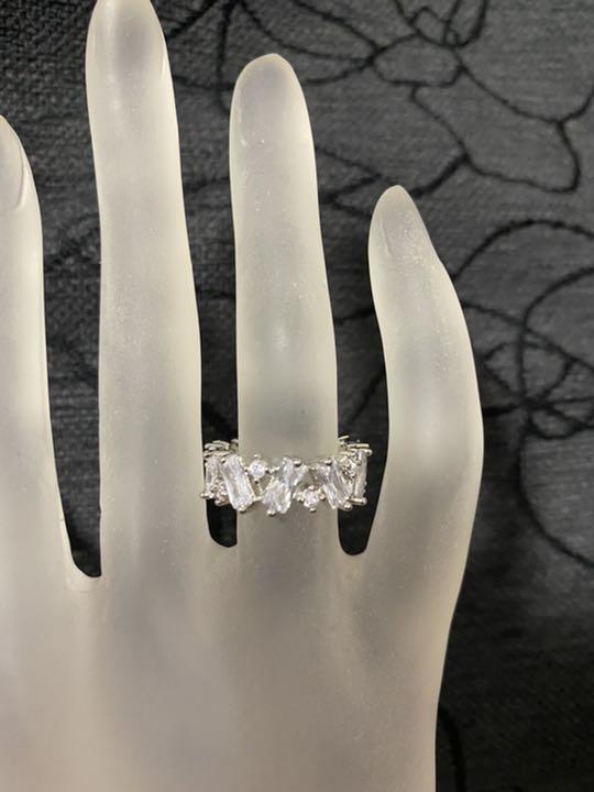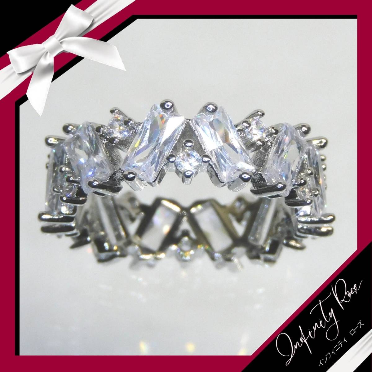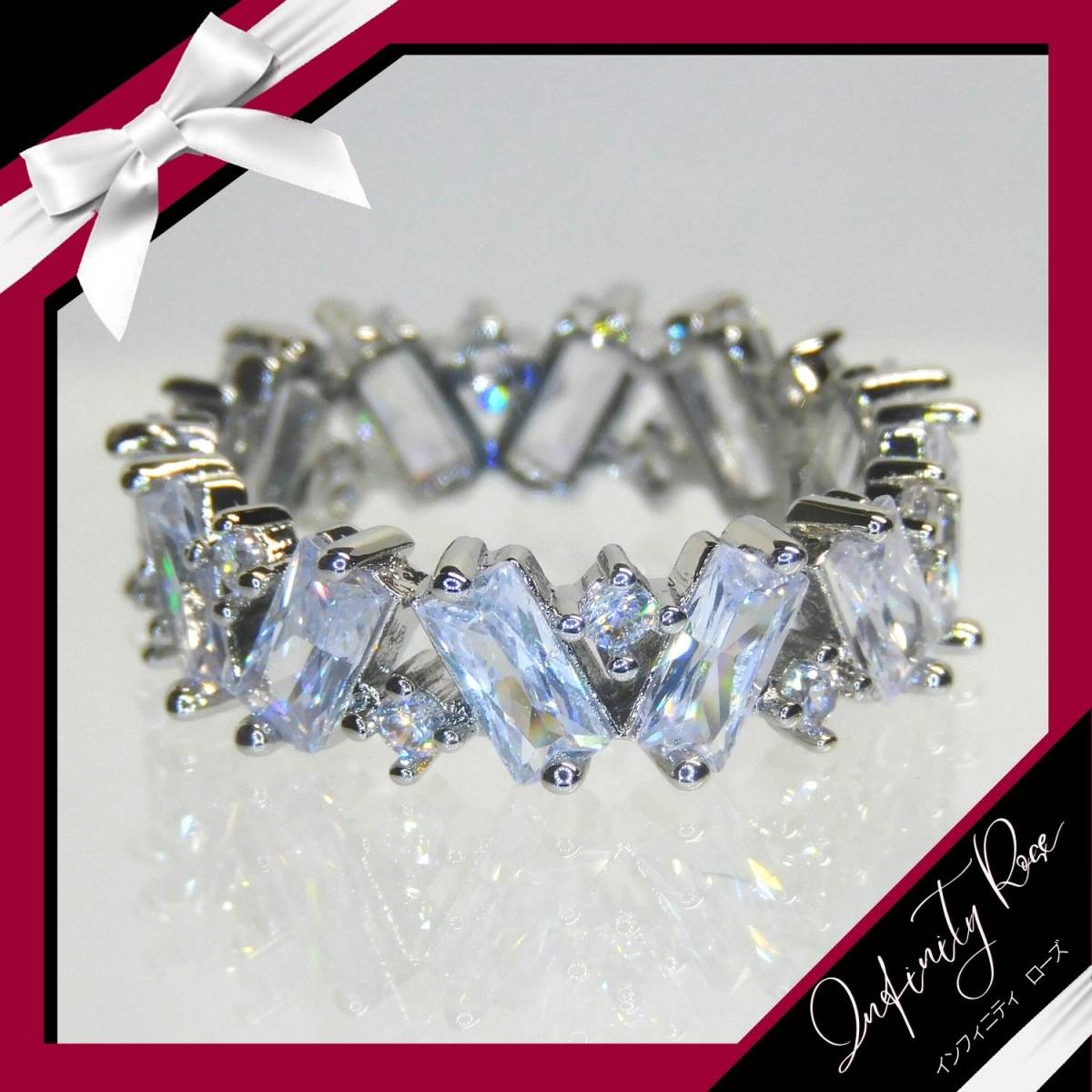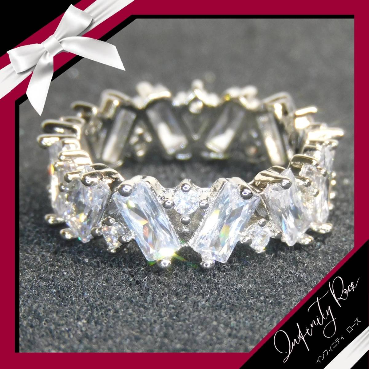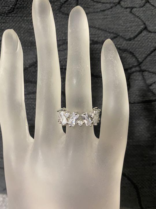 (1151)14号 シルバー×クリアのスクエアランダムリング クリスタルの指輪 スワロフスキー製クリスタル使用