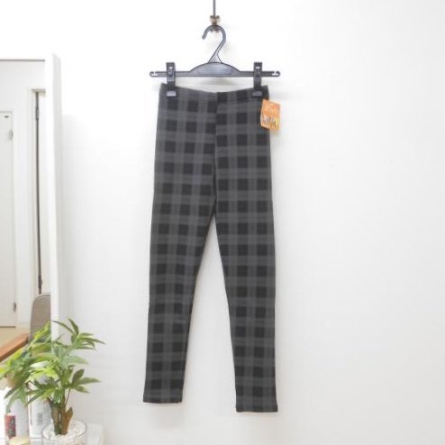 新品タグ付き レディース キッズ ジュニアの方にも着て頂けそうな秋冬向き裏起毛の暖かいパンツです。お色はグレー×黒・ブラックのチェック柄です。