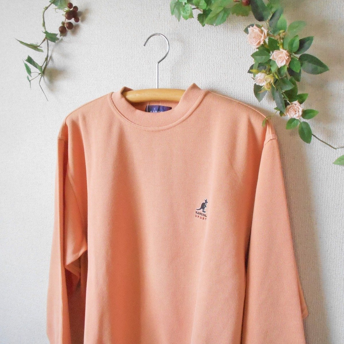 【ポイント】カンゴールのメンズ用トレーナーになります。お色はサーモン系ベースで春や秋を中心に着ていただけるお品です。前後にロゴ刺繍が入ったデザインでとってもお洒落な一着です。