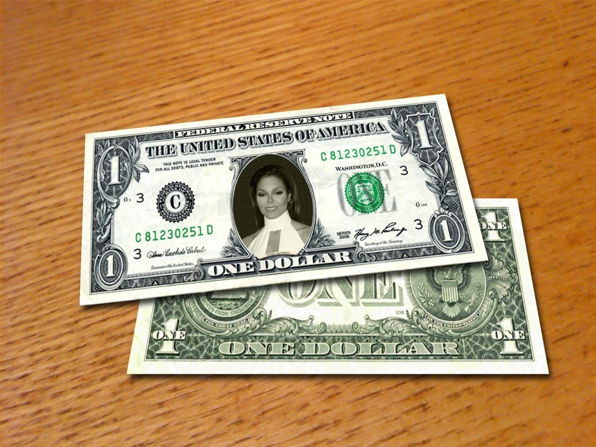 人気 ジャネット・ジャクソン(Janet Jackson)の米国公認 本物の1ドル札 になります!★