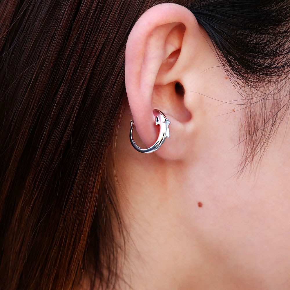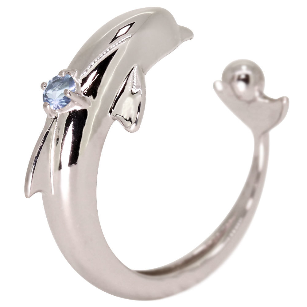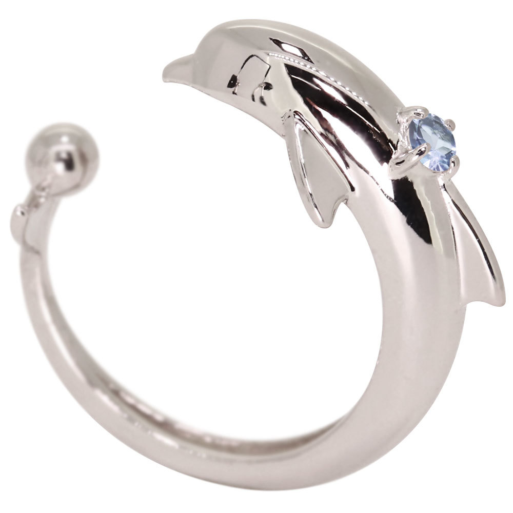 3月誕生石アクアマリンサンタマリアを使用した18金製の、イルカ(ドルフィン)モチーフのイヤーカフです。