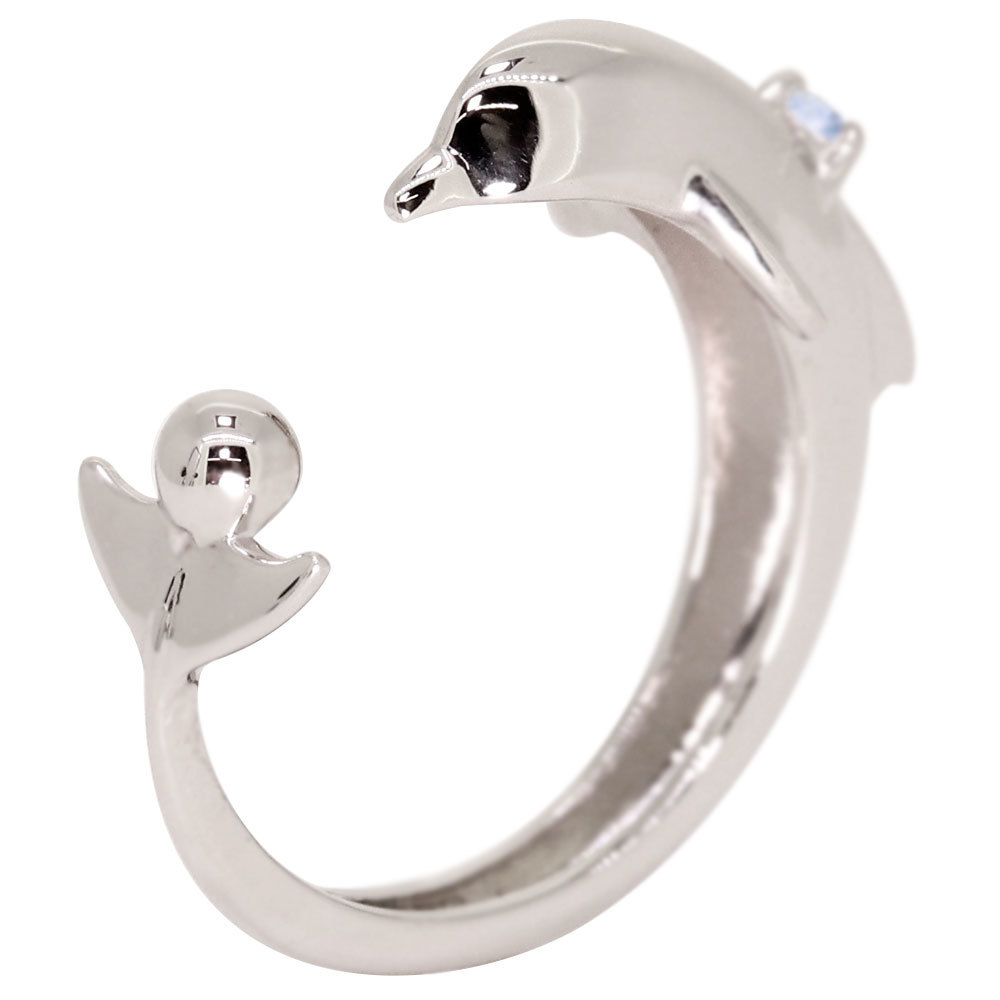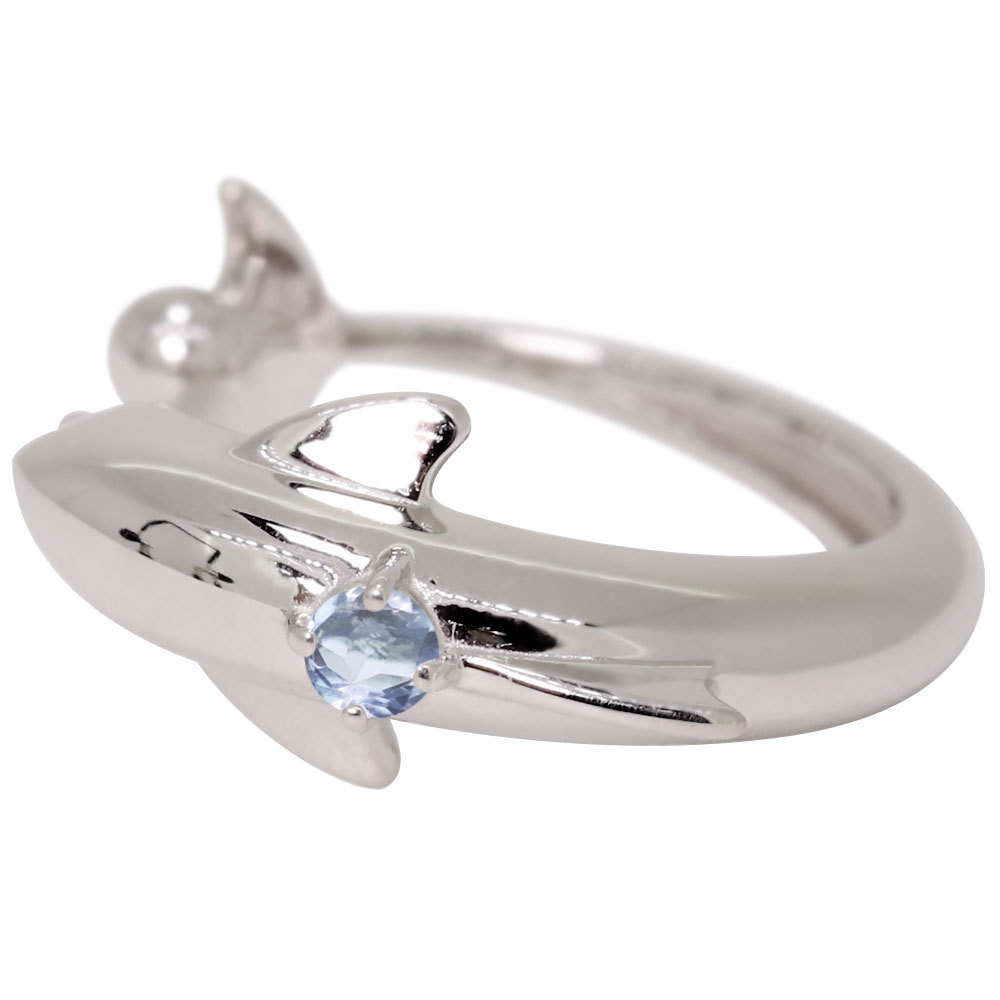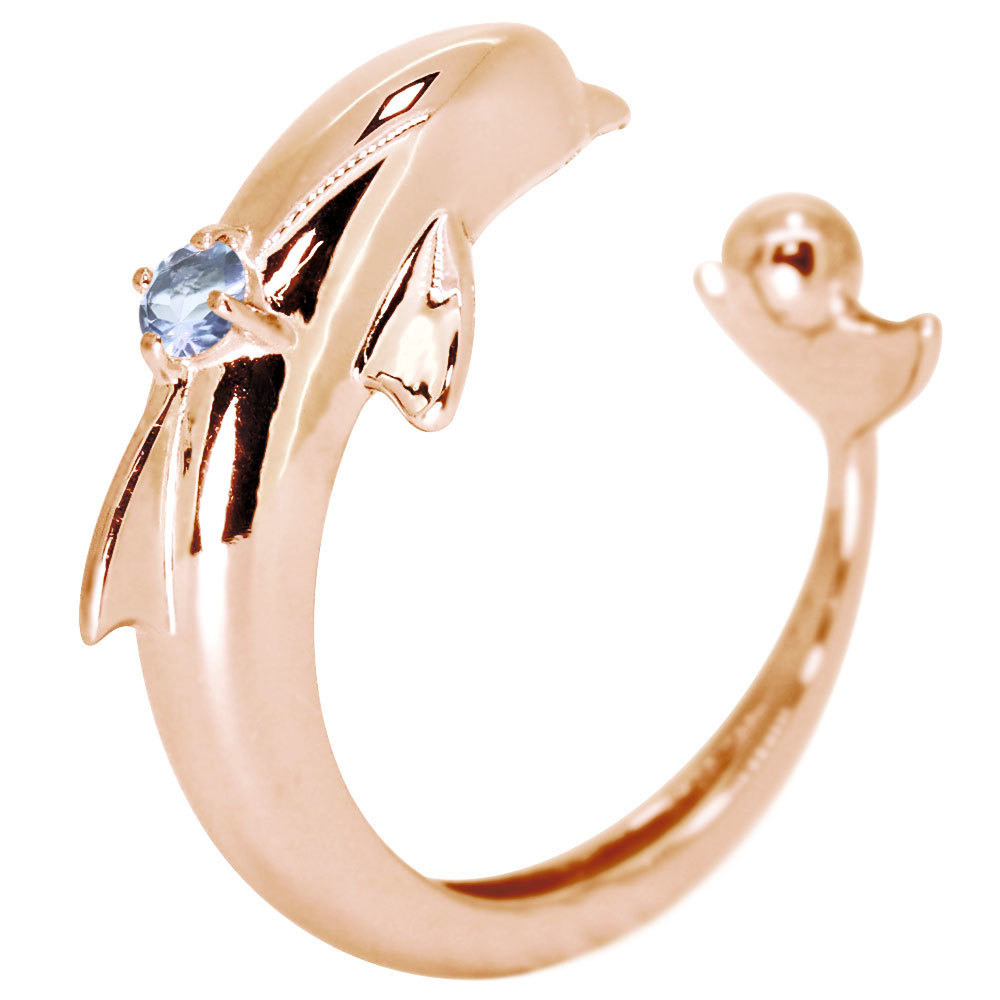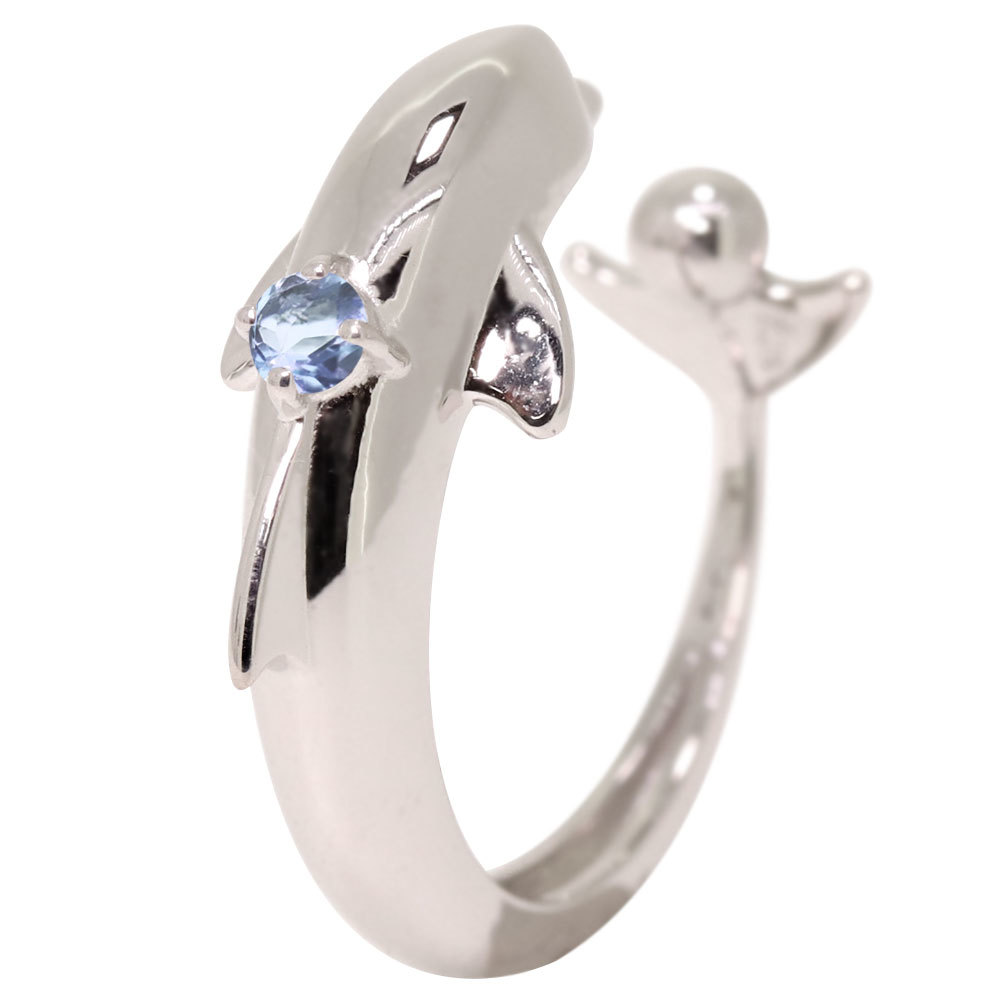 3月誕生石アクアマリンサンタマリアを使用した18金製の、イルカ(ドルフィン)モチーフのイヤーカフです。