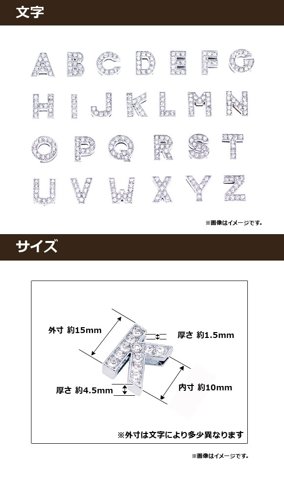 AP アルファベットチャーム U-Z 1個 ♪スライドするだけ! アイデア次第で素敵なアクセサリー! 選べる6文字 AP-UJ0174-LU-1