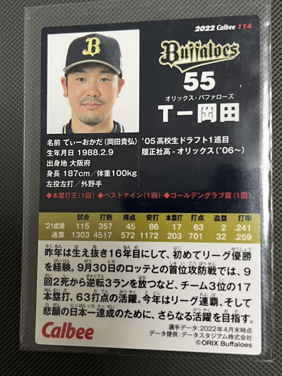 2022カルビー プロ野球チップスカード 114 T-岡田 オリックスバファローズ