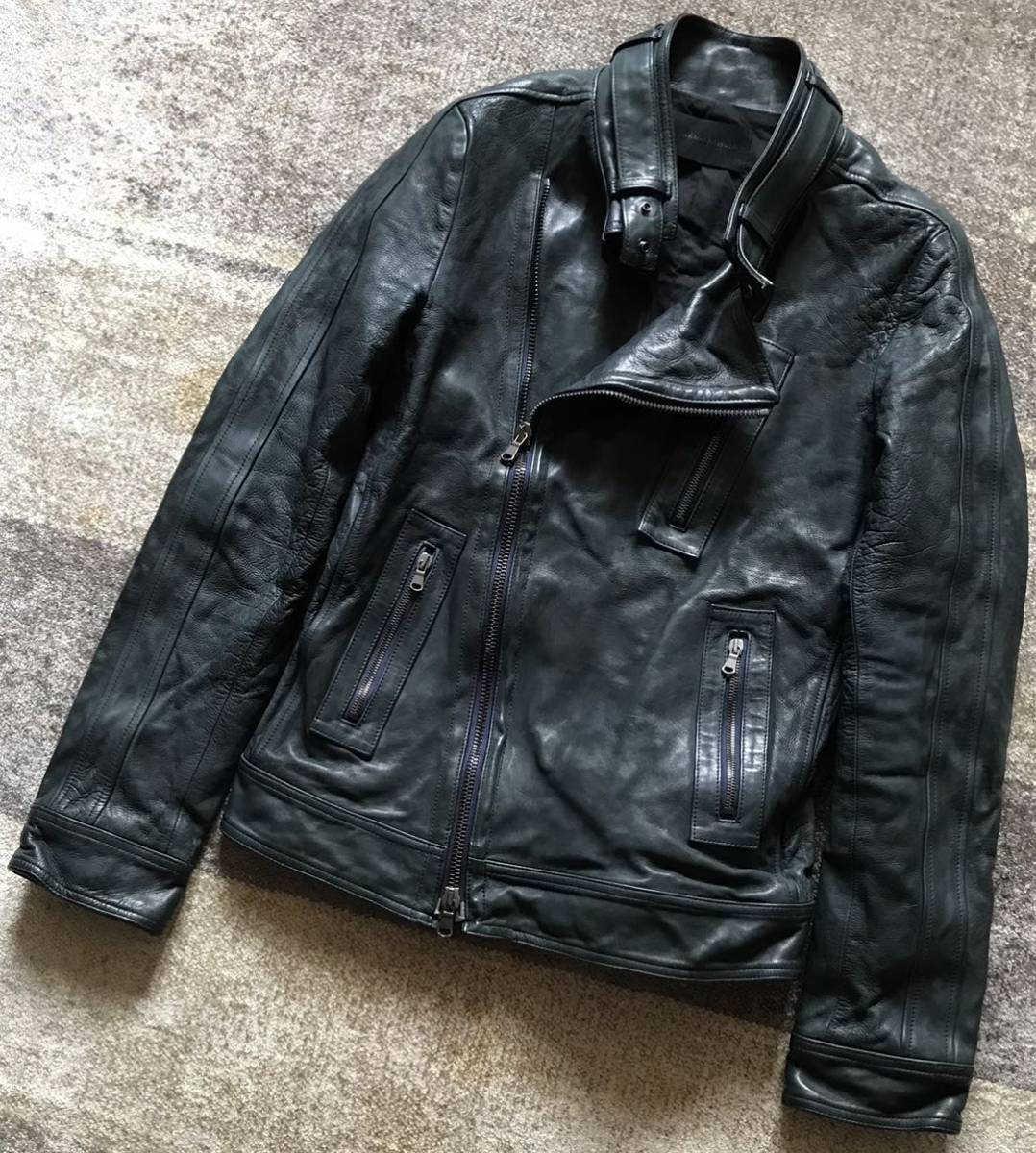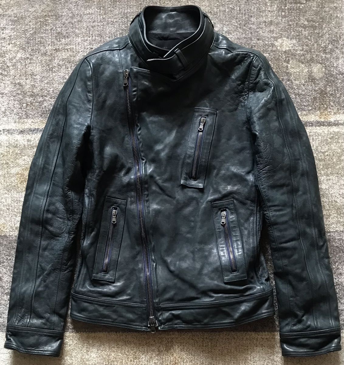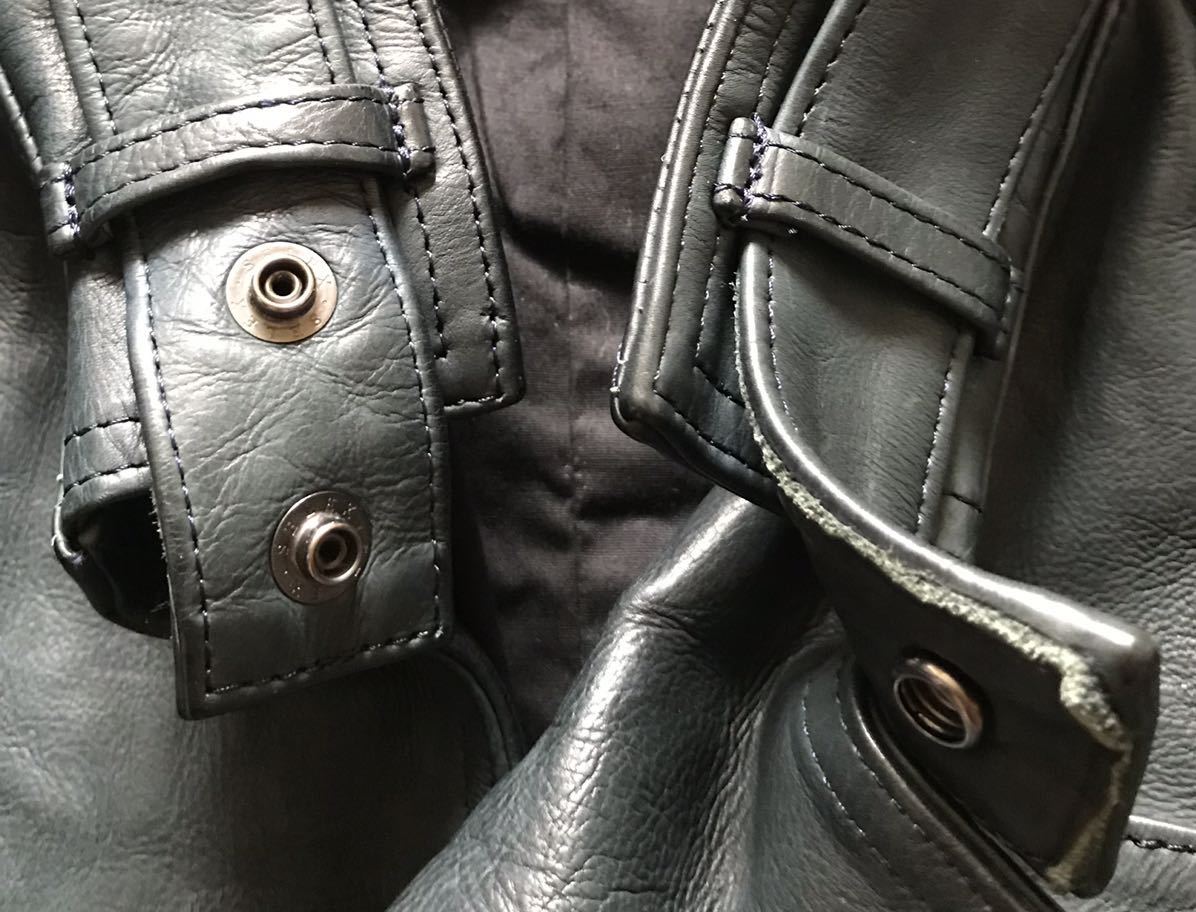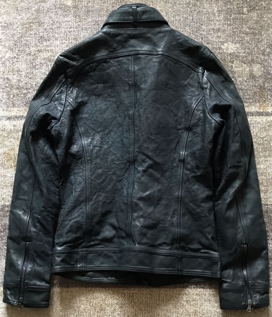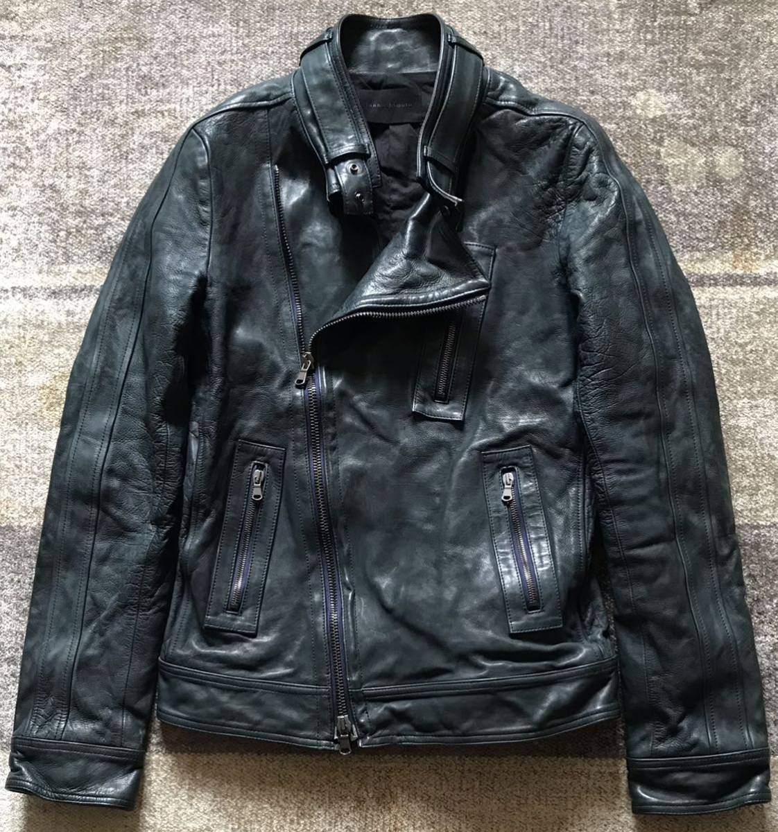 極上のシルエット&最高のカラー ★ junhashimoto ★ ジュンハシモト GARMENTDYE 製品染め 総裏地付き カウレザー 牛革 セミダブルライダースジャケット レザージャケット 3 です。