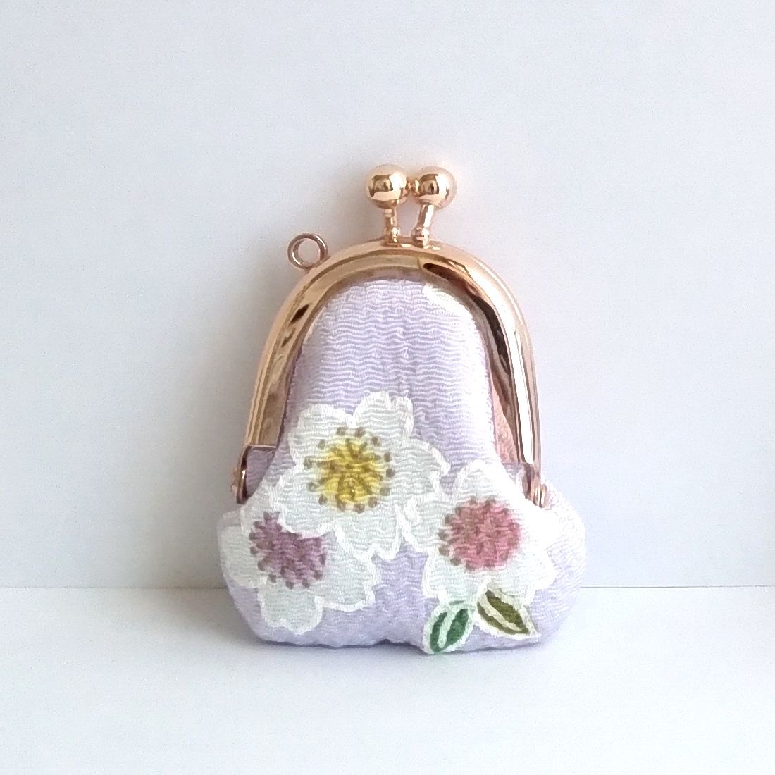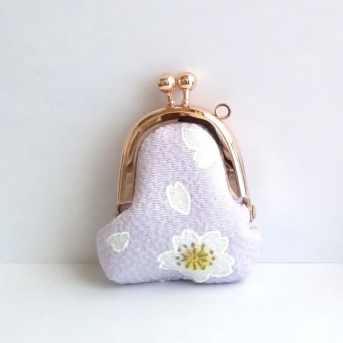 ●櫻●【ちりめん】小物入れ♪m060:【送料無料】小さいがま口小銭入れ,アクセサリーケース,コインケース,財布,ピルケース,花,淡紫