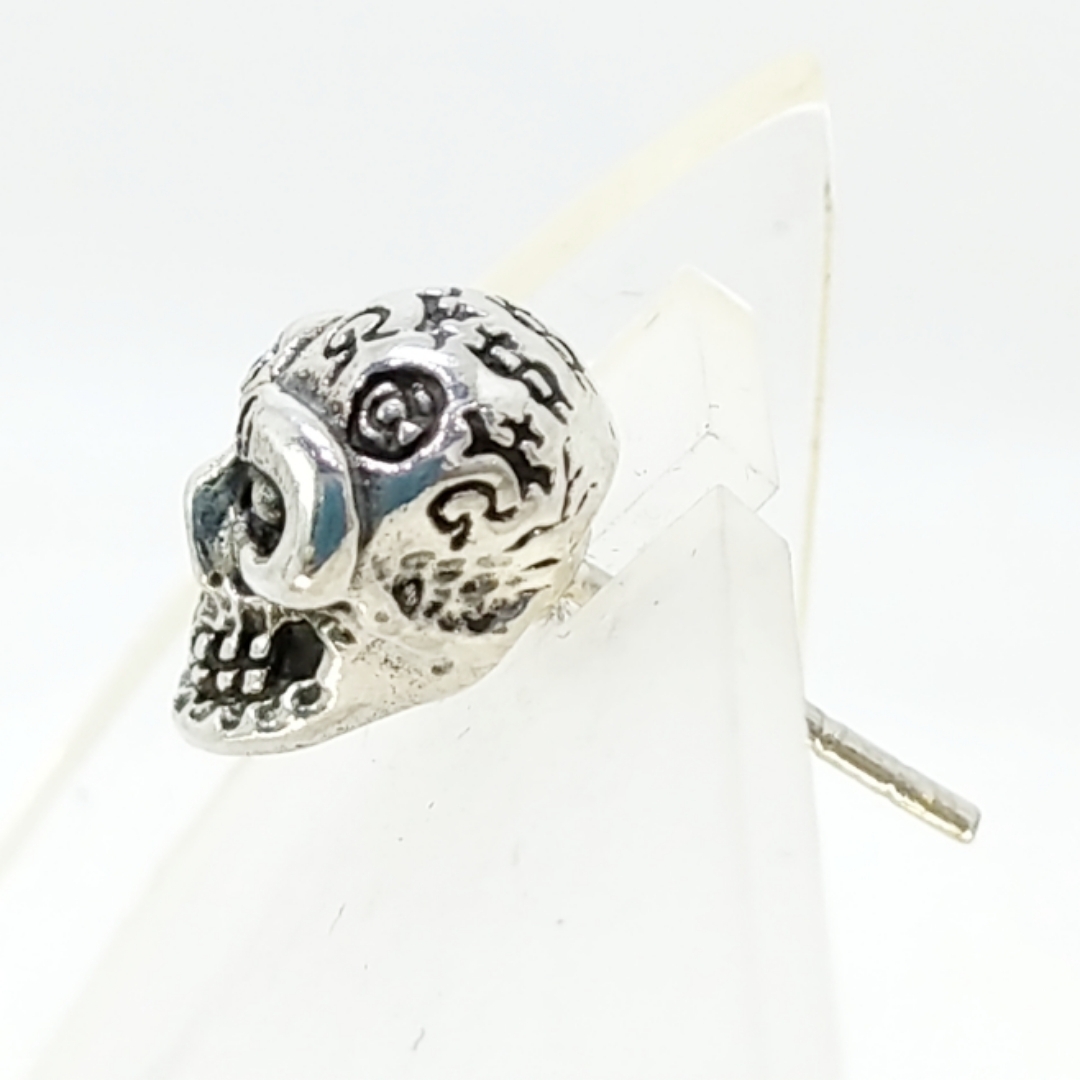 かなりかっこいいスカルピアスです^^頭部にタトゥーがデザインされています。素材→シルバー925全体サイズ→9×12ミリ※基本的に片耳からの販売となっておりますので、両耳分ご希望の場合は数量2でご注文ください。発送方法は ゆうパケット250円、佐川急便660円からになります。