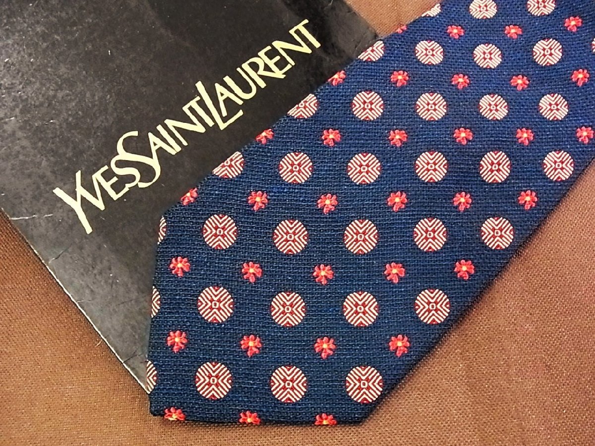 ♪27849C♪良品【刺繍 花 サークル デザイン 柄】サンローラン【YSL】ネクタイ
