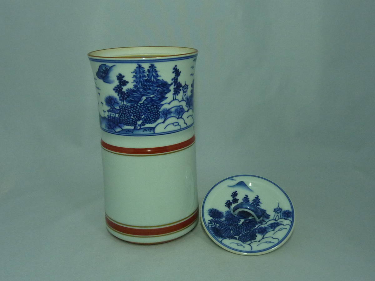 期間限定!◎◎利休kura茶道具RiQ蔵☆☆ 水指 / 染付山水文 細水指 二代手塚玉堂 京焼 / 共箱【骨董・美品】