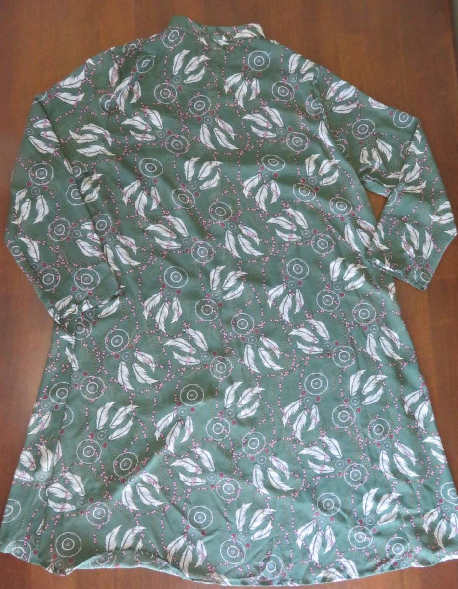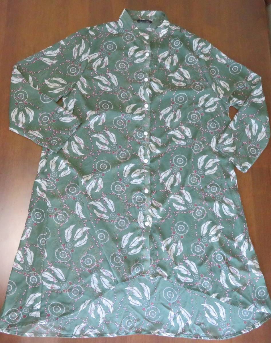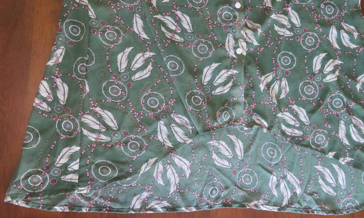 【TRUBE グリーン地に羽やハートのモチーフが美しい長袖ワンピースチュニック】トリューベ★ファッションメッセージ★前後で長さ違います
