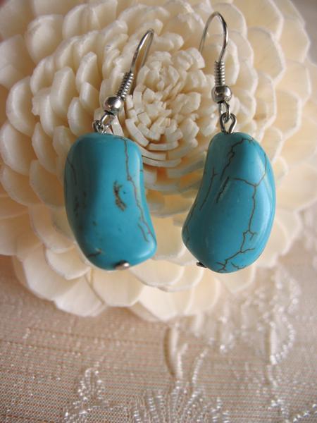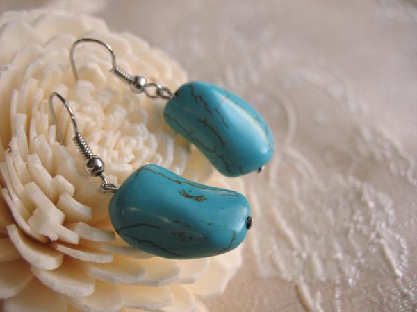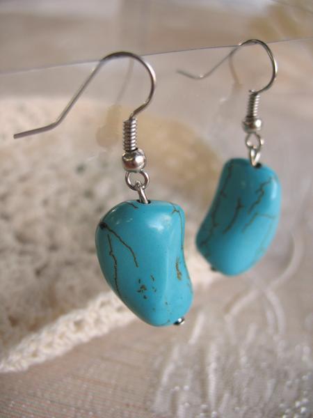 トルコ石(ターコイズ)とハウライトトルコを使用したかわいいピアスです。