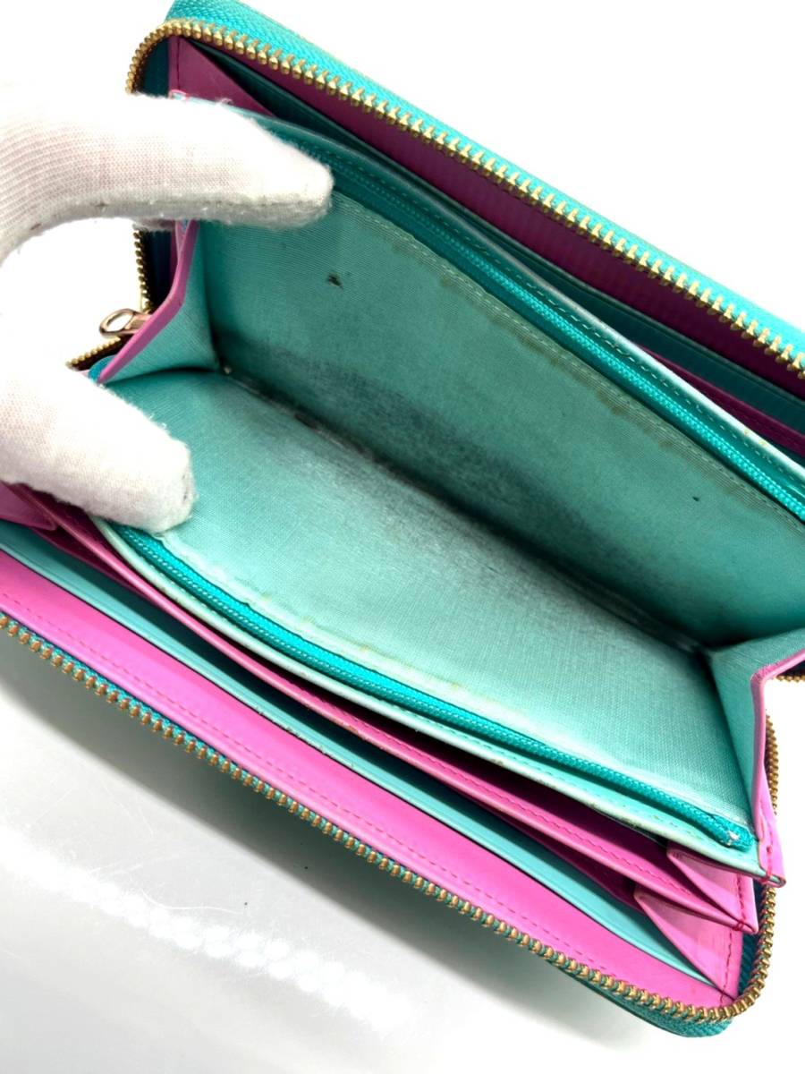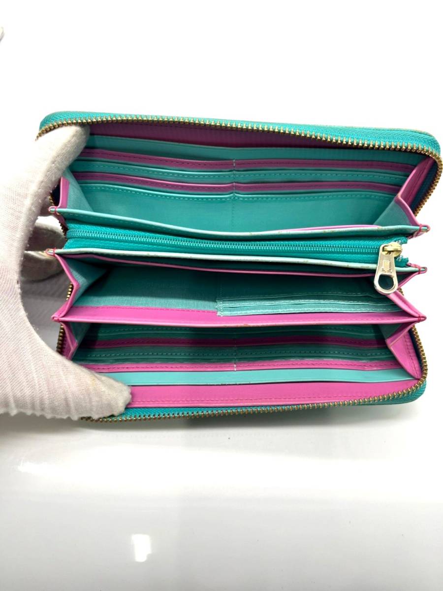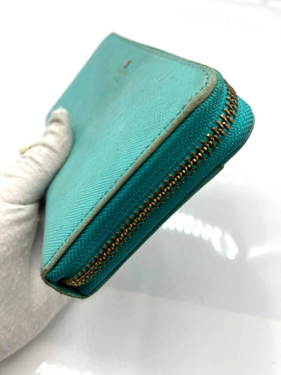 レディース ラウンドファスナー 長財布 ミントグリーン レザー