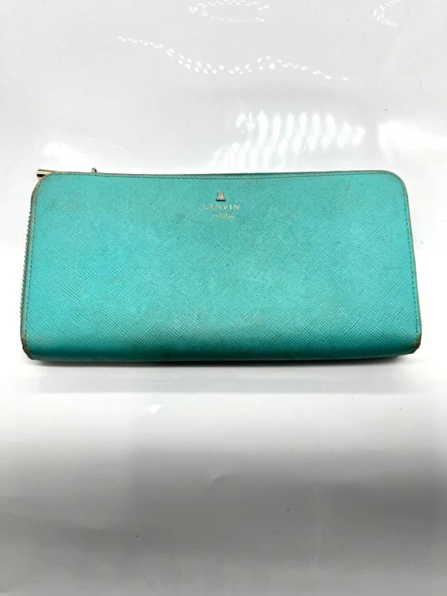 LANVIN ランバン レディース ラウンドファスナー 長財布 ミントグリーン レザー
