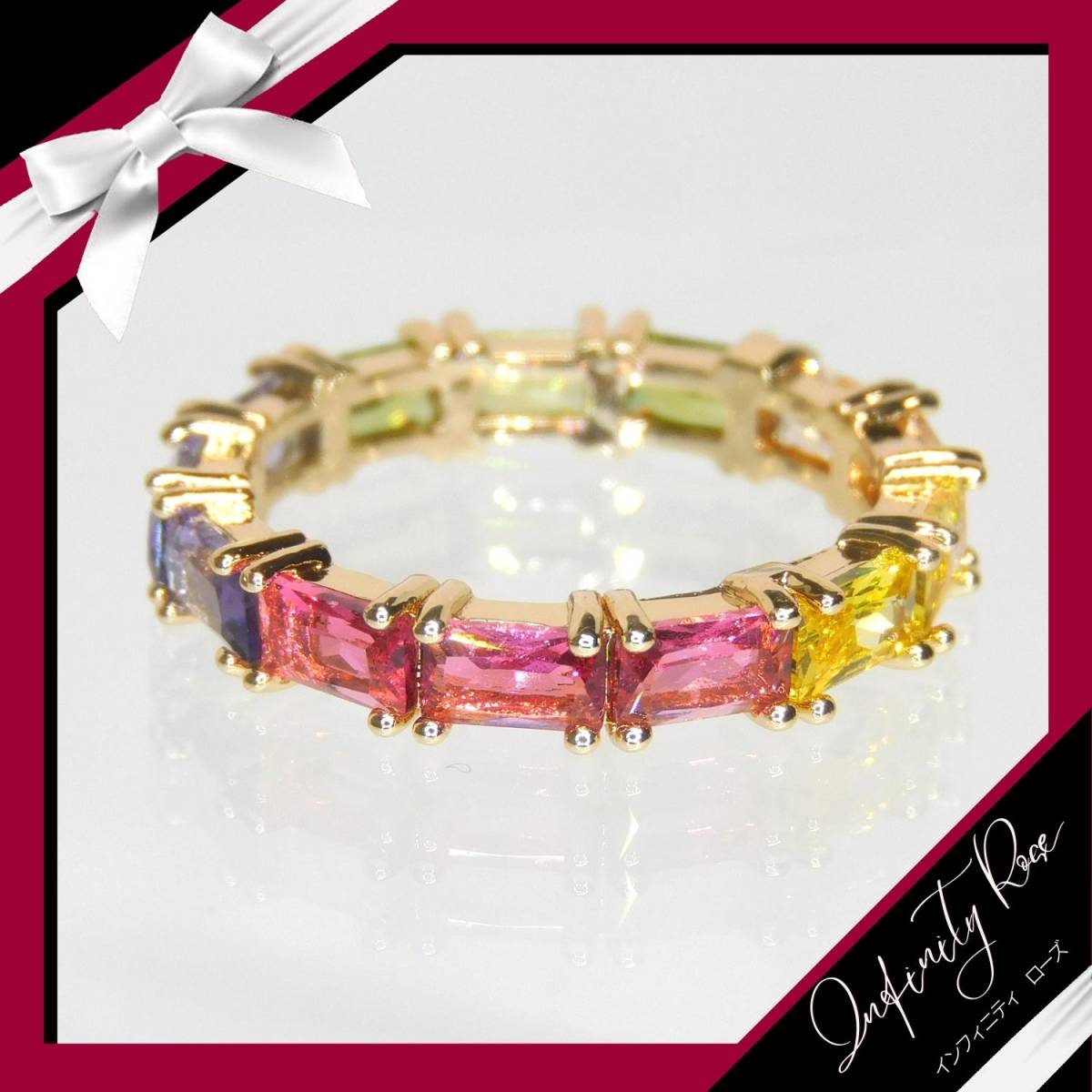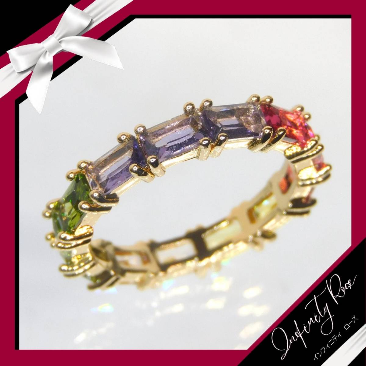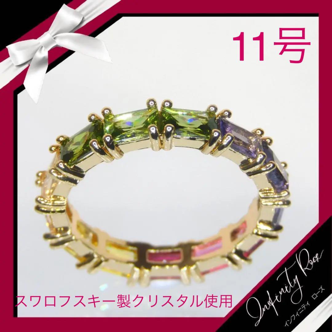 (1076)11号 カラフルリング スワロフスキー製クリスタル使用 細リング