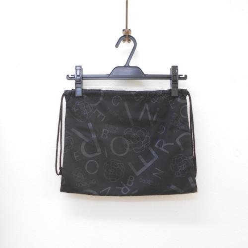 インゲボルグ INGEBORG のナップサックです。大きめなカメリアやロゴプリントが入って素敵な一品です。お色は黒・ブラックです。色んな用途にお使い頂けそうです。