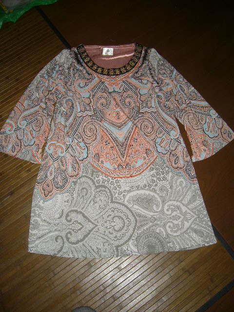893-58♀:BouJeloud ブージュルード チュニック ワンピース size.F 色.サーモンピンク ペーズリー柄 バティツク フェズ