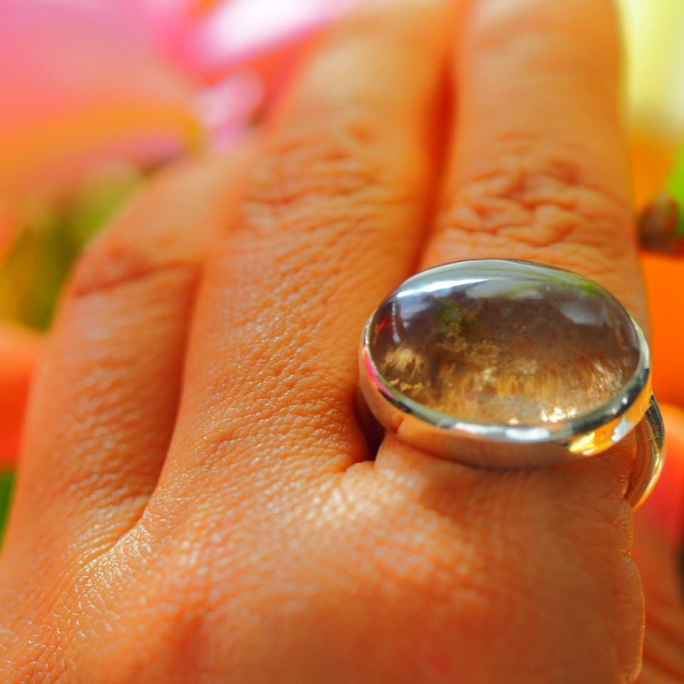 スーパーセブン、ストロベリークォーツ 多種の鉱物を内包した水晶のリングです。
