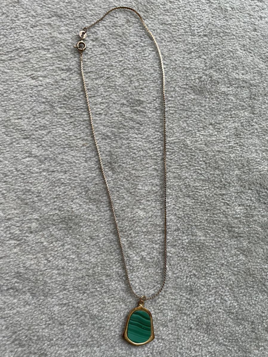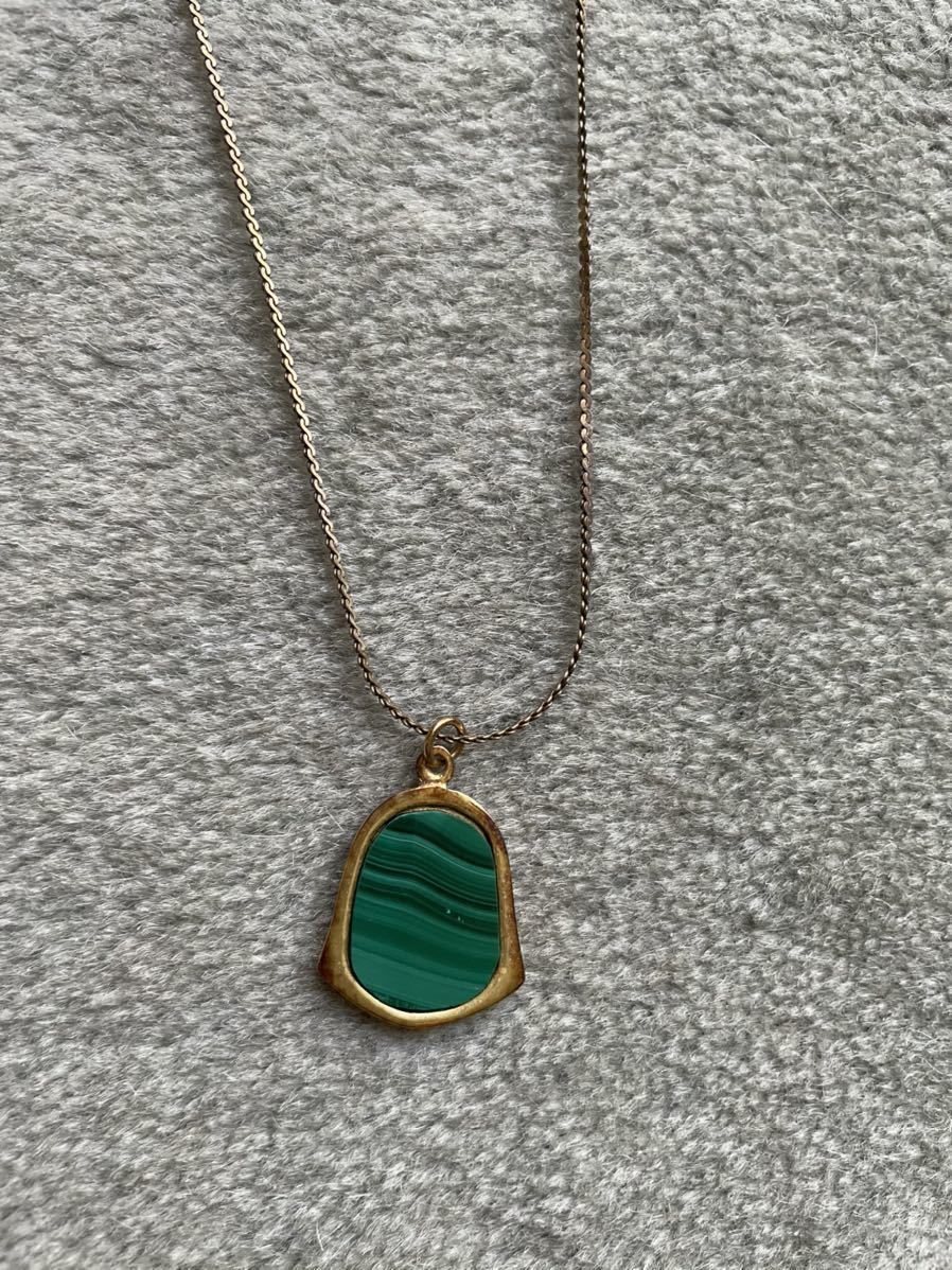縦2.2cm、横2cm。孔雀石と思われますが、詳細不明です。ネックレスは経年による変色あります。長期保存品です。