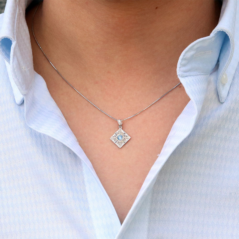 11月誕生石ブルートパーズを使用した18金製の、メンズネックレス(ペンダント)です。