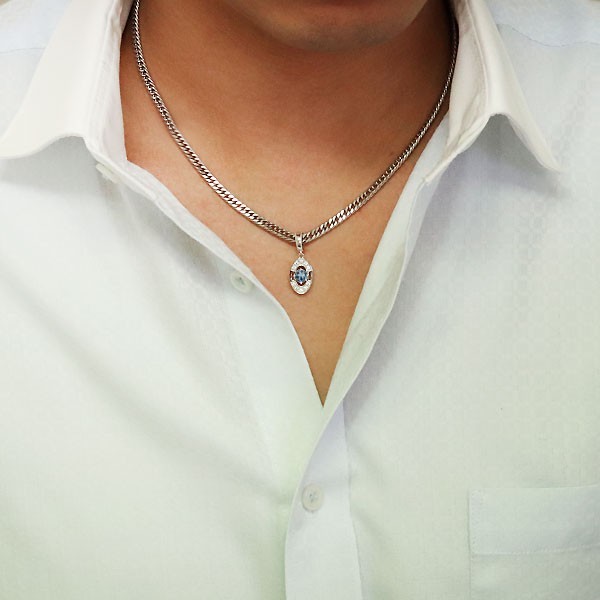 3月誕生石アクアマリンサンタマリアを使用した10金製の、メンズネックレス(ペンダント)です。