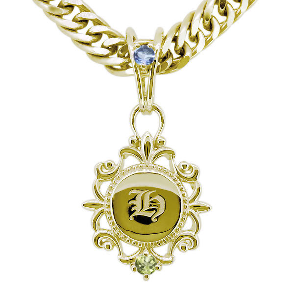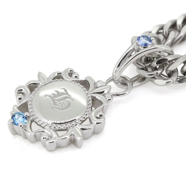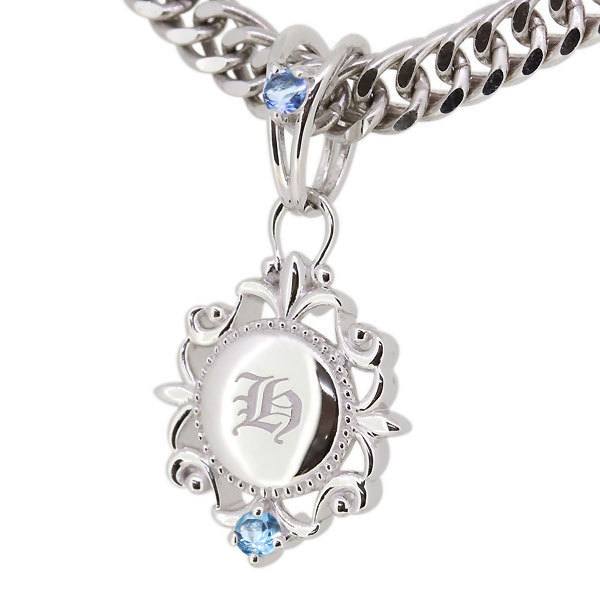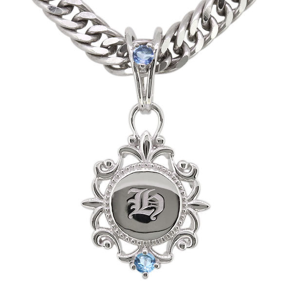 3月誕生石アクアマリンサンタマリアを使用したシルバー製の、イニシャル入りメンズネックレス(ペンダント)です。