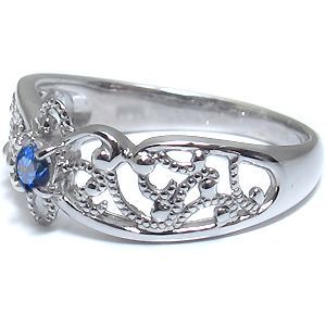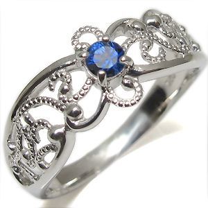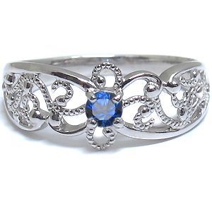 9月誕生石サファイアを一粒使用したミル打ちを施したアンティークデザインの18金製リングです。
