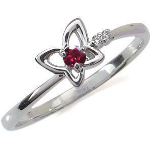 7月誕生石ルビーを一粒使用した、バタフライ(蝶)モチーフの18金製のリング(指輪)です。