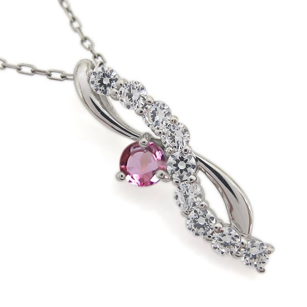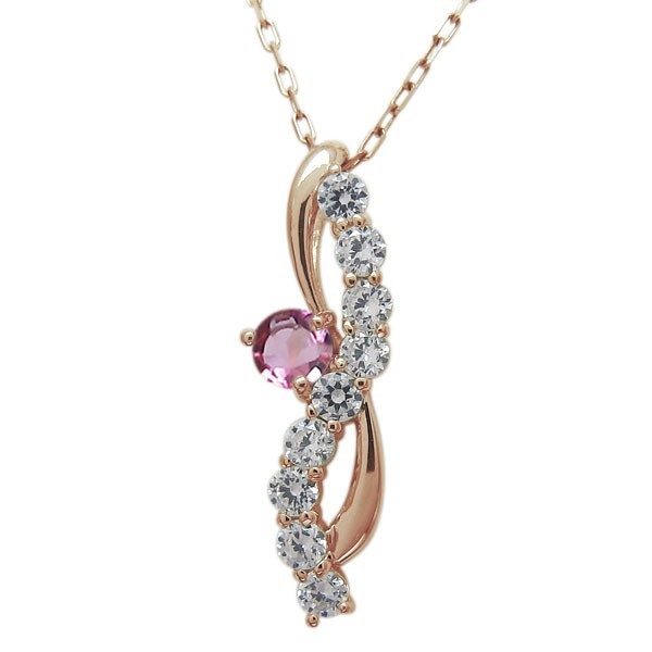 10月誕生石ピンクトルマリンを使用した18金製の、結婚10周年にお勧めメモリアルネックレスペンダント。