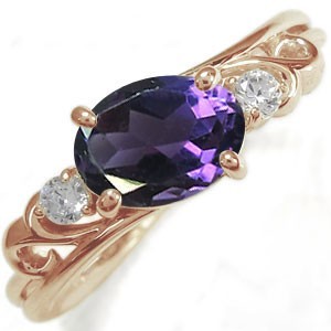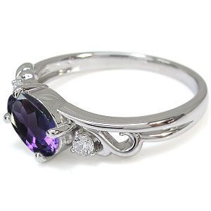 ■石名:主石 アメジスト(オーバル 約 5.0mm×7.0mm/天然石使用)脇石 ダイヤモンド(2石合計で約 0.067ct/天然石使用)
