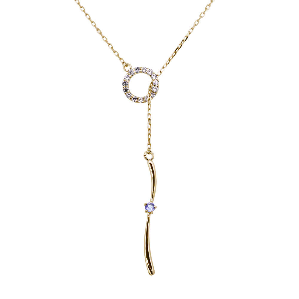 12月誕生石タンザナイトを使用した18金製の、Y字ロングネックレスです。